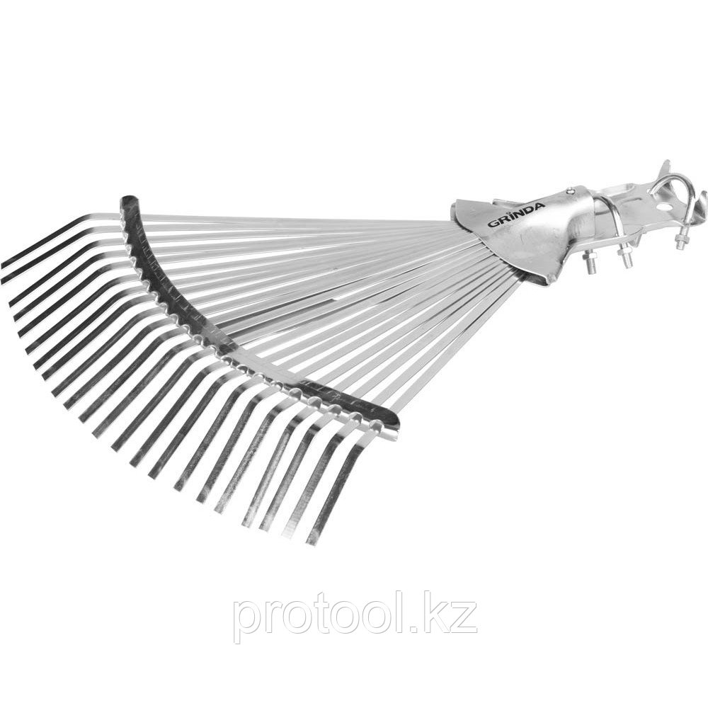 Грабли GRINDA, веерные регулируемые усиленные, 22 плоских зубца2 728Купить!тг. Маркетплейс: Satu.kz Protool.kz - продажа электроинструмента, ручные ст Доставка: по Казахстану ПожаловатьсяРяд удобных качественных инструментов для уборки и обработки садового участка поможет с легкостью и комфортом выполнять, казалось бы, самую тяжелую работу. Рабочие части, изготовленные из сталей высоч еще→айшего качества, и надежные рукоятки гарантируют прочно. Применяется для сбора опавших листьев и скошенной травы на садово-огородных участках. 22 плоских зубца изготовлены из