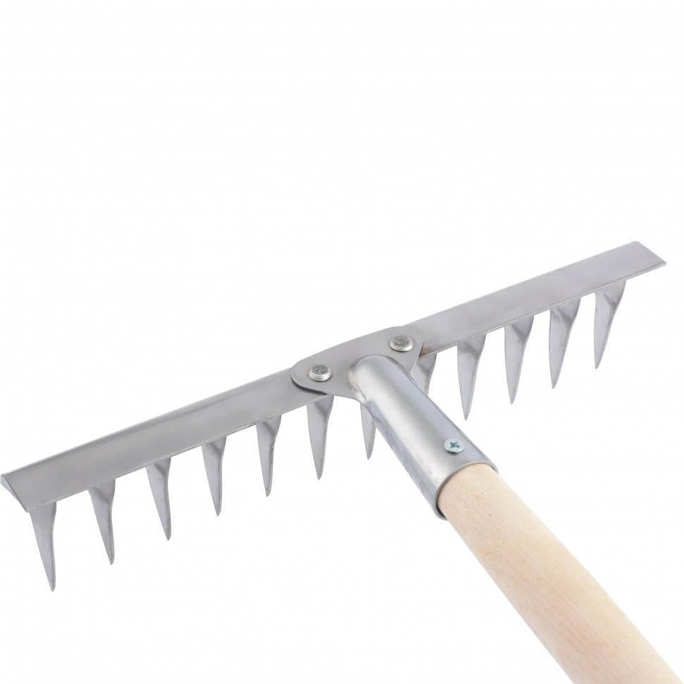 Грабли, нержавеющая сталь, 340 х 1300 мм, 14 витых зубьев, деревянный черенок, Россия, Сибртех 61760mi4 155Купить!тг.All-tools.kzДоставка: из АлматыПожаловатьсяГрабли предназначены для рыхления почвы, а также для сбора мусора на садовых участках, грядках и газонах. ОсобенностиИнструмент изготовлен из нержавеющей сталиОснование крепится к тулейке при помощи с еще→тальных заклепокВ сборе с деревянным черенком.ПреимуществаНадежный, долговечный инструментНе подвержены коррозии.