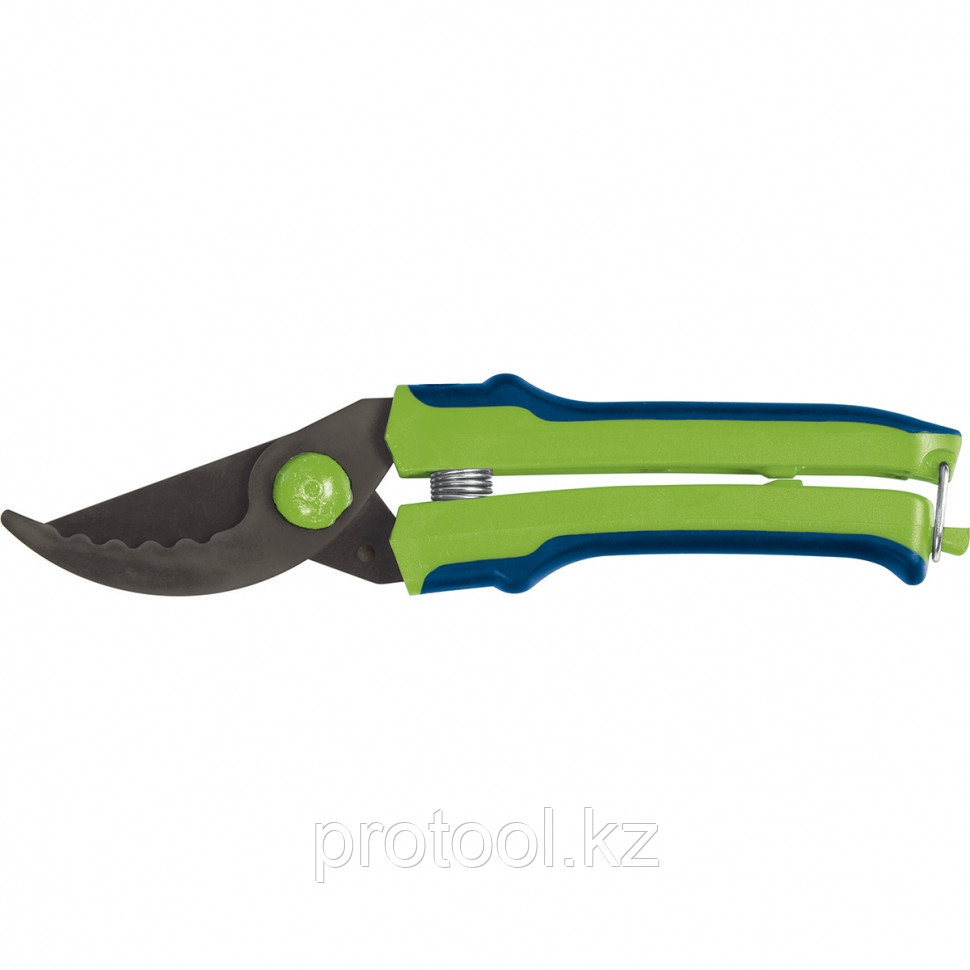 Секатор, 220 мм, возвр. пружина, оксид.покрытие, пласт. ручки, зубчатый (Горизонт)//СИБРТЕХ РоссияСекатор с прямым резом, двухкомпонентными рукоятками и петлевым фиксатором, расположенным на конце одной из рукояток. Предназначен для обрезки живых веток кустарников и небольших деревьев диаметром до 15 мм. Зубчики на нижнем лезвии удерживают ветку во время работы. Секатор изготовлен из стали 40Х и имеет оксидированное покрытие для защиты от коррозии. Режущее лезвие остро заточено. 1 719 тг. Маркетплейс: Satu.kz Protool.kz - продажа электроинструмента, ручные ст Доставка: по Казахстану ПожаловатьсяКупить!