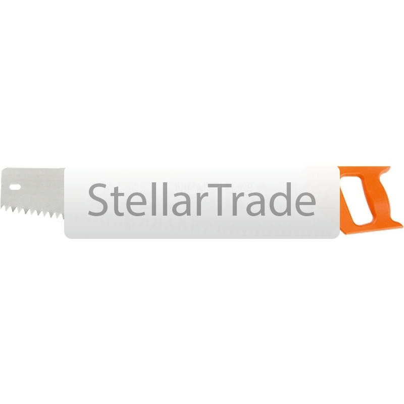 Ножовка по дереву Россия 23120Ножовка изготовлена из пружинной холоднокатаной стали марки 65Г. Полотно инструмента имеет универсальный зуб с двухсторонней заточкой. В комплект входят 2 дополнительных полотна с прямым зубом. Характеристики RUSSIA 23120 Быстрая замена полотна да Длина 300мм _Длина в упаковке 440мм Марка стали полотна 65Г Назначение 4 100 тг.Stellartrade.kzДоставка: из АлматыПожаловатьсяКупить!