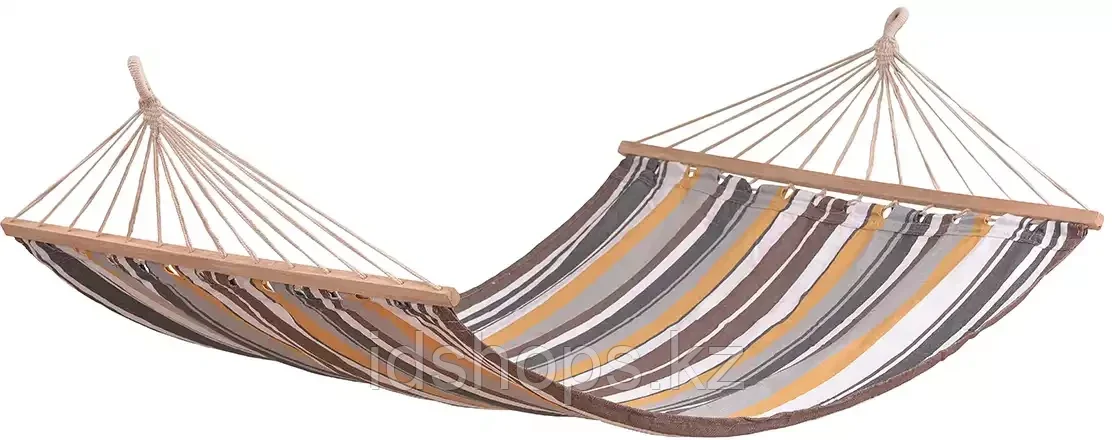 Двухместный гамак с перекладинами14 739Купить!тг. Маркетплейс: Satu.kz Ani-Sun Trade Доставка: по Казахстану ПожаловатьсяРазмеры Длинна с веревками: 350 см Длинна лежака: 200 см Ширина: 150 см Параметры Мест: 2 Нагрузка: до 160 кг. Материал: полипропилен Цвета: в разные цвета в полоску