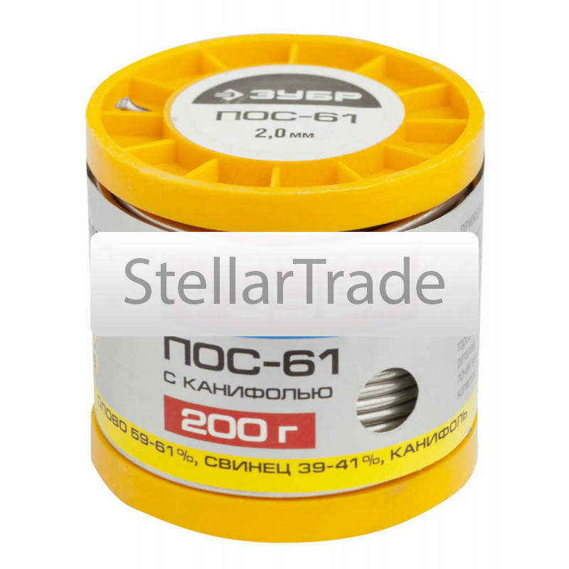Припой ЗУБР 55450-100-10Припой ПОС 61 Зубр 55450-100-10 применяется для лужения и пайки элементов электро- и радиоаппаратуры, печатных схем, точных приборов с герметичными швами, где недопустим перегрев, пайка жести, обмоток электрических машин, монтажных элементов, моточных и кабельных изделий, радиаторов и листового цинка, оцинкованных деталей холодильных агрегатов, теплообменников, электроламп, кабельных 6 200 тг.Stellartrade.kzДоставка: из АлматыПожаловатьсяКупить!