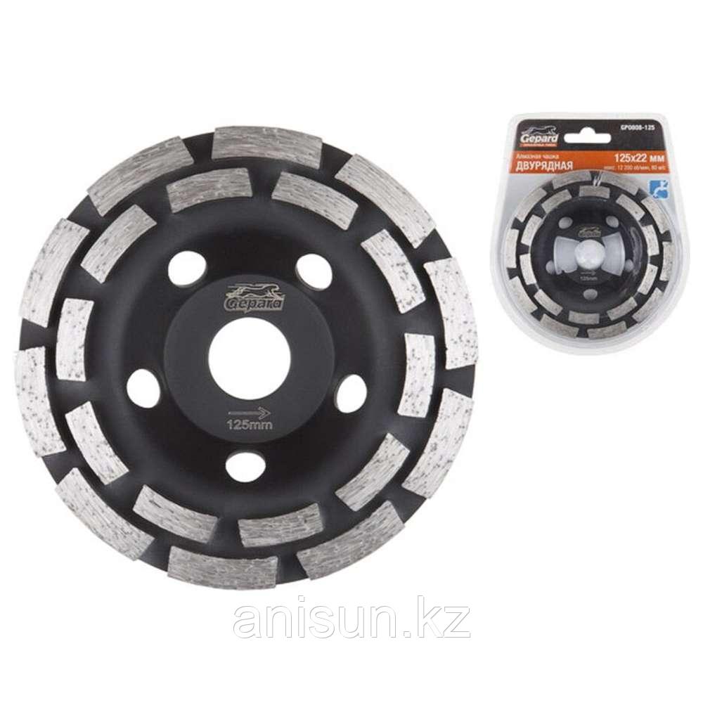Чашка алмазная шлифовальная двурядная GEPARD 125х22.2мм GP0808-125Чашка алмазная шлифовальная двурядная GEPARD 125х22.2мм GP0808-125 - применяется для интенсивной грубой зачистки выпуклых и неровных участков, снятия толстых слоев бетона, удаления швов и наплывов с бетонных, гранитных, мраморных, кирпичных, каменных и других особо твердых поверхностей. Изделие является сменной составной частью углошлифовальных или мозаично-шлифовальных машин, имеющих посадку 22,2 мм. Высокий ресурс использования.Комплектация:Чашка алмазная 1 шт.Упаковка 1 шт. 7 875 тг. Маркетплейс: Satu.kz Ani-Sun Trade Доставка: по Казахстану ПожаловатьсяКупить!