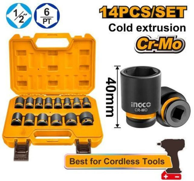 INGCO Набор головок ударных SUPER INDUSTRIAL 1/2" 14 шт HKISSD12141Набор из 14 ударных головок 1/2"DR Размер привода: 1/2" Размеры ударных головок: 10, 11, 12, 13, 14, 15, 16, 17, 18, 19, 21, 22, 24, 27 мм Материал: Cr-Mo Холодная экструзия Термообработка 15 000 тг.Stellartrade.kzДоставка: из АлматыПожаловатьсяКупить!