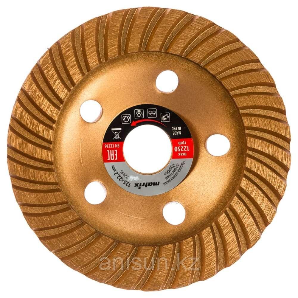 Чашка алмазная зачистная MATRIX Turbo 125мм 72995Чашка алмазная зачистная MATRIX Turbo 125мм 72995 - устанавливается на вал углошлифовальной машины, для чего предусмотрено посадочное отверстие 22,2 мм. Используется для придания окончательной гладкости бетонным, каменным, мраморным, гранитным и кирпичным поверхностям, а также для снятия фаски на плитах из гранита или мрамора. Предназначена для профессионального 7 190 тг. Маркетплейс: Satu.kz Ani-Sun Trade Доставка: по Казахстану ПожаловатьсяКупить!