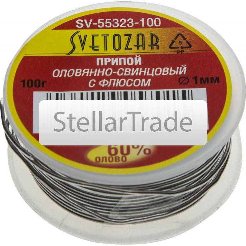 Припой СВЕТОЗАР SV-55323-025Оловянно-свинцовый припой SV-55323-025 Светозар применяется для пайки радиодеталей: диодов, транзисторов, конденсаторов, микросхем и др., также припой может использоваться для лужения проводов. Припой с 60% содержанием олова и 40% содержанием свинца оптимально подходит в случаях, когда элементы для спайки нельзя перегревать. В полой проволоке находится сердечник флюса, который образует 2 150 тг.Stellartrade.kzДоставка: из АлматыПожаловатьсяКупить!