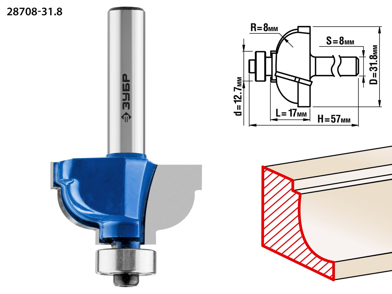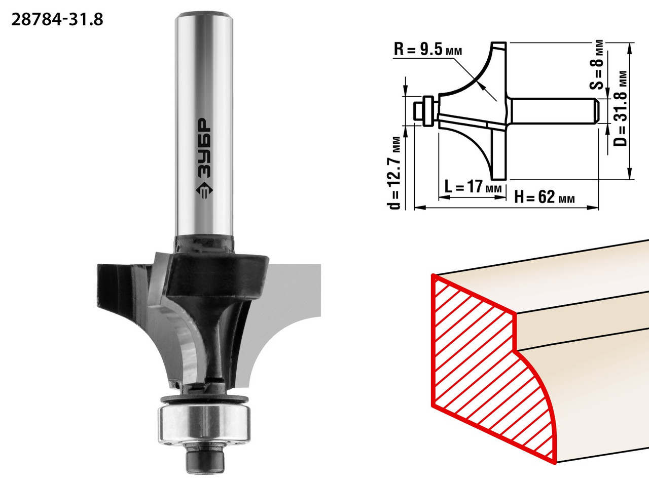 ЗУБР 31,8x17мм, радиус 9.5мм, фреза кромочная калевочная №1 28784-31.8Фреза отлично подходит для скругления кромок при обработке столешниц, полок, шкафов и прочих работ с разнообразными видами древесины 6 150 тг.All-tools.kzДоставка: из АлматыПожаловатьсяКупить!