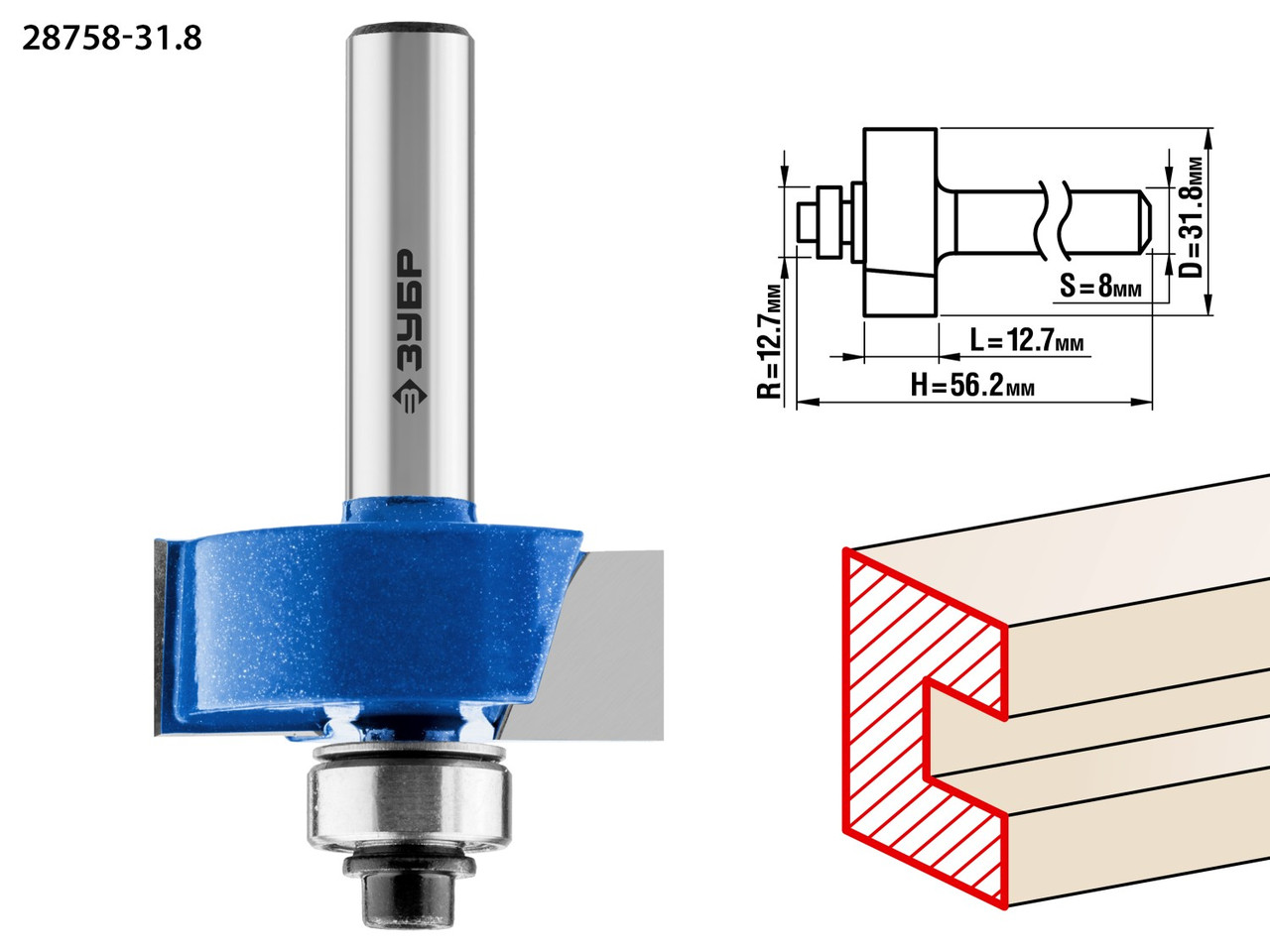 ЗУБР 31,8x13мм, хвостовик 8мм, фреза фальцевая 28758-31.8Фреза отлично подходит для выборки пазов четвертей на кромках и торцах деталей при работе с различными видами древесины. 3 400 тг.All-tools.kzДоставка: из АлматыПожаловатьсяКупить!