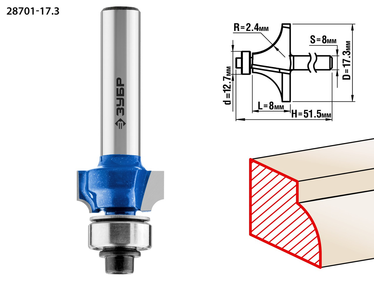 ЗУБР 17.3x7мм, радиус 2.4мм, фреза кромочная калевочная №1 28701-17.3Фреза отлично подходит для скругления кромок при обработке столешниц, полок, шкафов и прочих работ с разнообразными видами древесины 2 990 тг.All-tools.kzДоставка: из АлматыПожаловатьсяКупить!