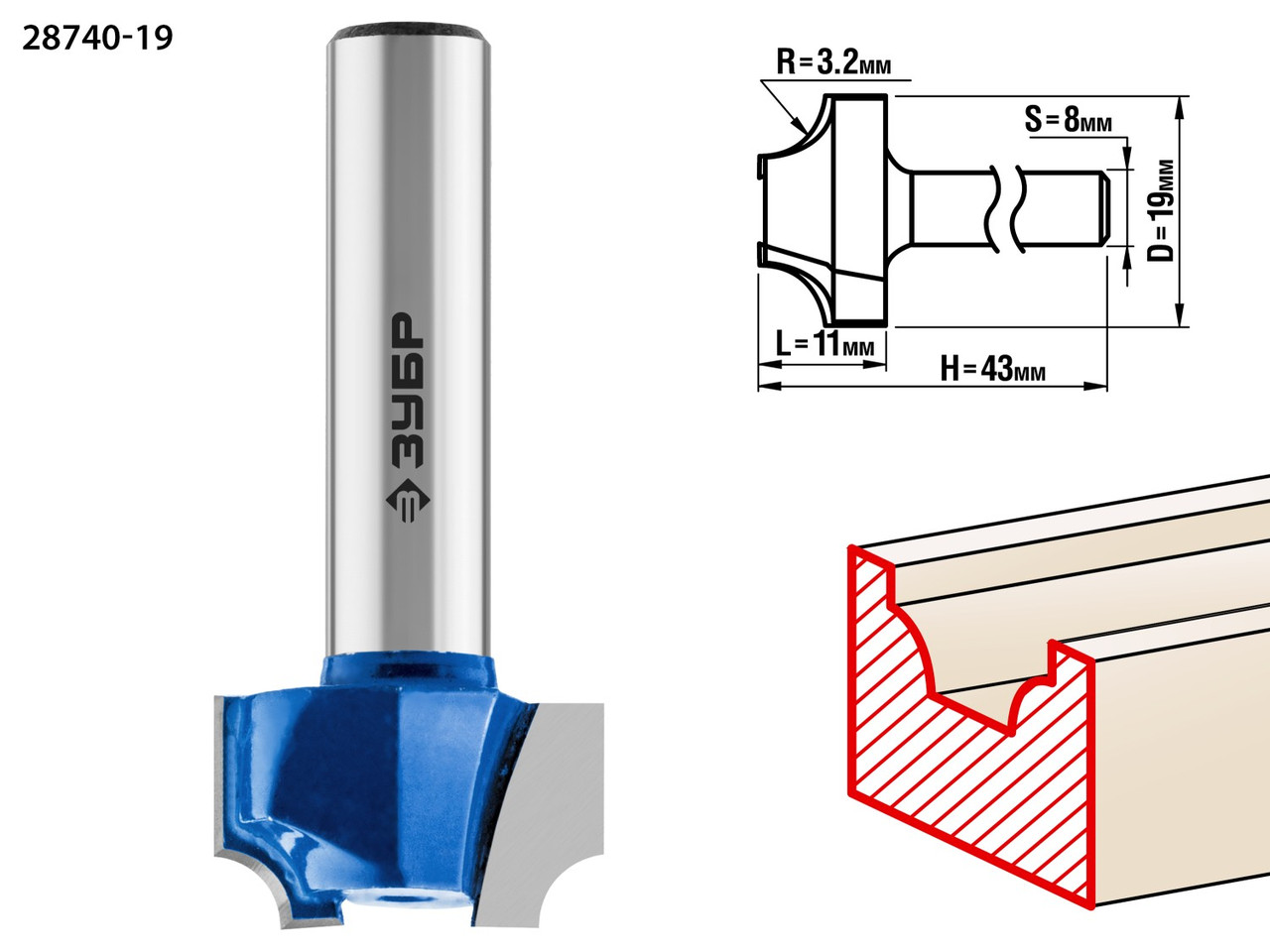 ЗУБР 19x11мм, радиус 4мм, фреза пазовая фасонная №6 28745-19Фреза отлично подходит для профилирования кромок, изготовления декоративных пазов и рисунков, фрезерования канавок при работе с различными видами древесины. 3 048 тг.All-tools.kzДоставка: из АлматыПожаловатьсяКупить!