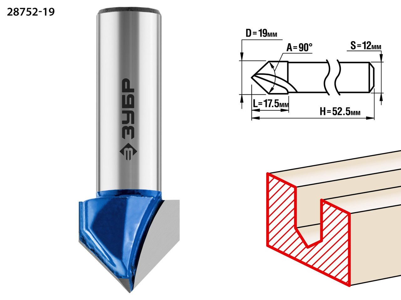 ЗУБР 19x17,5мм, угол 90°мм, фреза пазовая галтельная V-образная 28752-19Фреза отлично подходит для профилирования кромок, изготовления декоративных V-образных пазов и рисунков, фрезерования канавок при работе с различными видами древесины. 3 140 тг.All-tools.kzДоставка: из АлматыПожаловатьсяКупить!