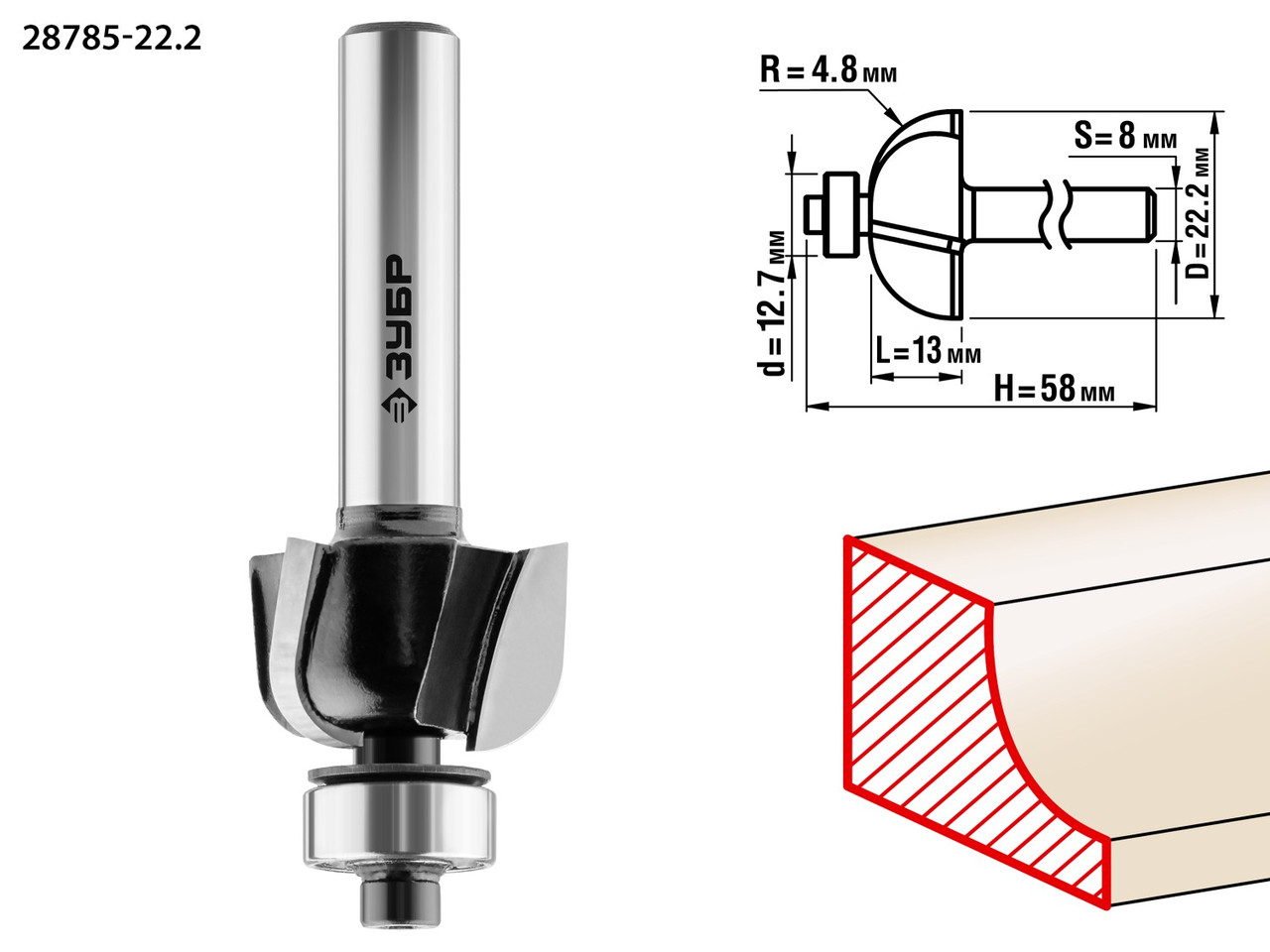ЗУБР 22.2x25.4мм, радиус 4.8мм, фреза полустержневая с подшипником 28722-22.2Фреза отлично подходит для обработки кромок, торцев, получения декоративного профиля при работе с различными видами древесины. 6 003 тг.All-tools.kzДоставка: из АлматыПожаловатьсяКупить!