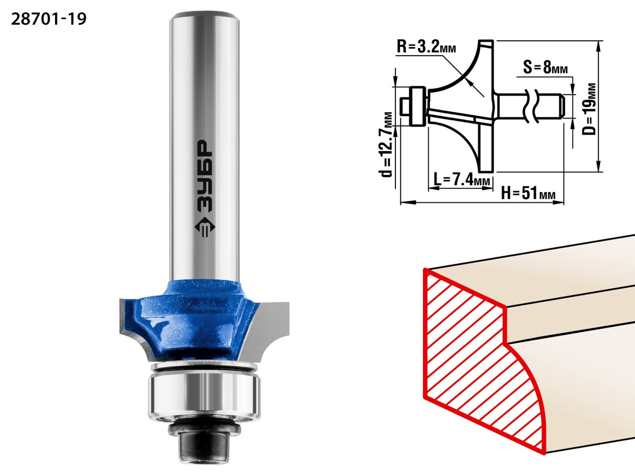 ЗУБР 19x7мм, радиус 3,2мм, фреза кромочная калевочная №1 28701-19Фреза отлично подходит для скругления кромок при обработке столешниц, полок, шкафов и прочих работ с разнообразными видами древесины 3 151 тг.All-tools.kzДоставка: из АлматыПожаловатьсяКупить!