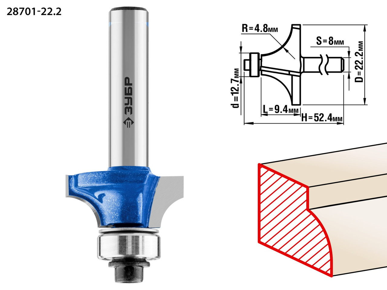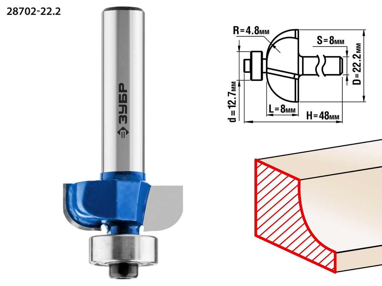 ЗУБР 22.2x9мм, радиус 4.8мм, фреза кромочная калевочная №1 28701-22.2Фреза отлично подходит для скругления кромок при обработке столешниц, полок, шкафов и прочих работ с разнообразными видами древесины 3 508 тг.All-tools.kzДоставка: из АлматыПожаловатьсяКупить!