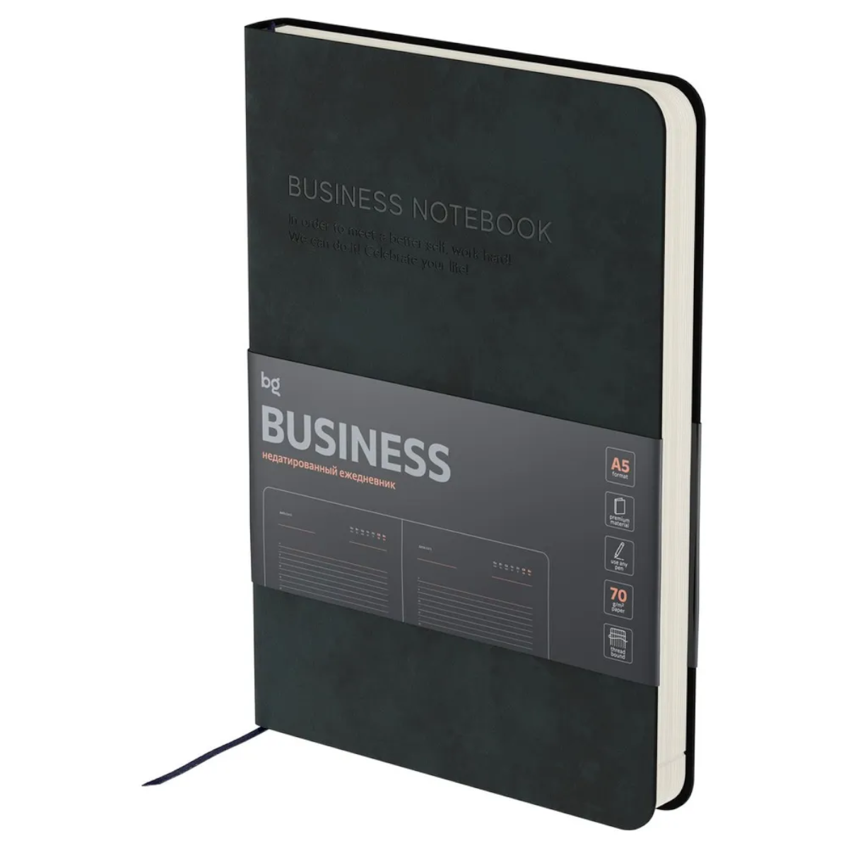 Ежедневник недатированный, А5, 136л., мягкий переплет, кожзам, BG "Business. Navy blue", темно-синий2 945Купить!тг.Marwin.kzДоставка: из АлматыПожаловатьсяЕжедневник недатированный BG серии "Business" – идеальный помощник для деловых людей, которые ценят организованность и эффективность. Формат А5 (145*205 мм). Изделие состоит из 136 листов тонирова еще→нной бумаги плотностью 70 г/м2, которая подходит для любых типов ручек и не будет просвечиваться. В линованный блок с полем для даты и планингом удобно записывать встречи, идеи и задачи. Уголки листов с перфорацией. Мягкая обложка выполнена из экокожи серого цвета и дополнена тиснением. Сочетание спокойных тонов и стильного дизайна делает его отличным выбором для профессионалов, стремящихся достичь успеха в своей деятельности. Перфорированные уголки и закладка-ляссе обеспечат комфорт и удобство при ис…