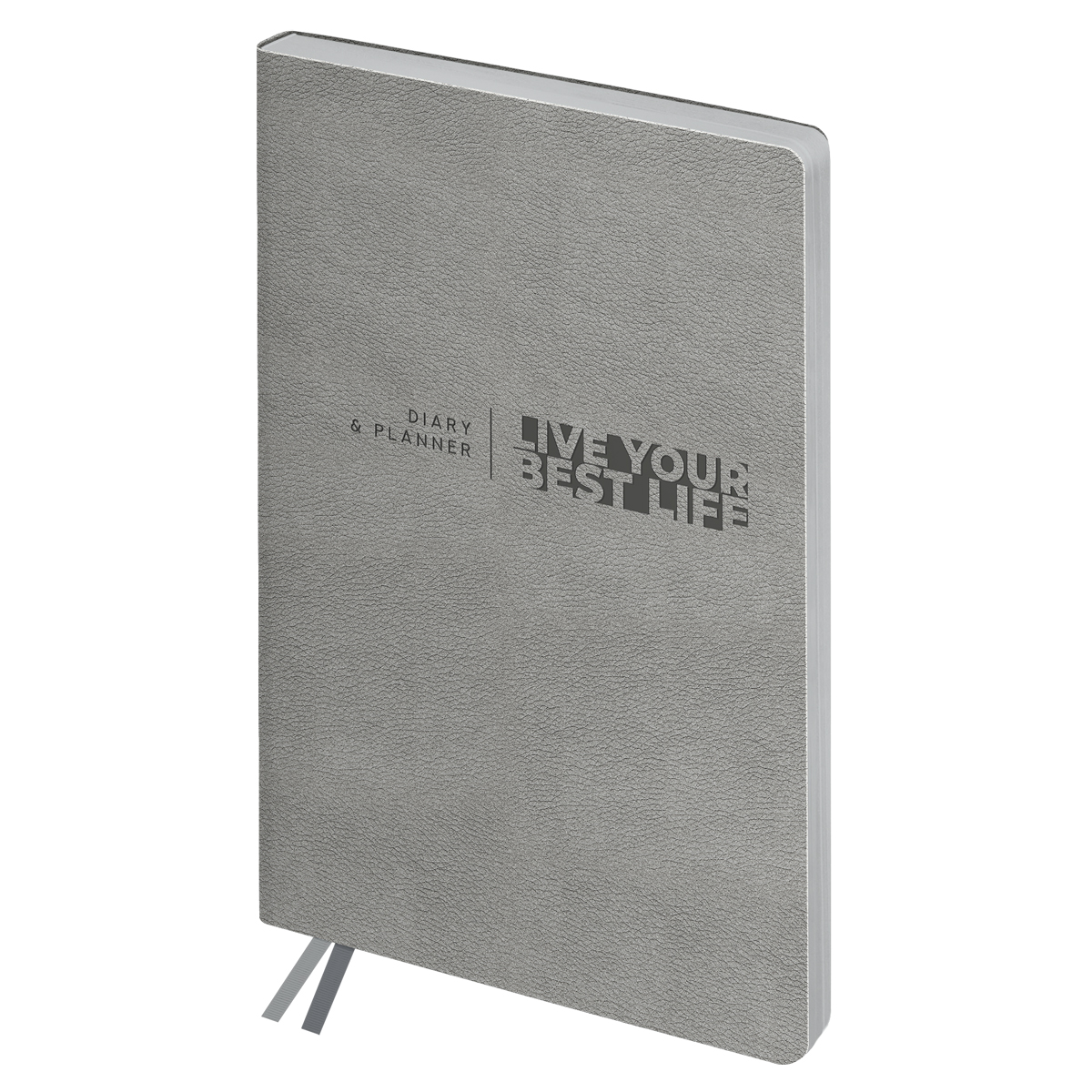 Ежедневник недатированный, А6+, 136л., мягкий переплет, кожзам, BG "Waltz. Silver metallic", цветной срез2 845Купить!тг.Marwin.kzДоставка: из АлматыПожаловатьсяЕжедневник недатированный формата А6+ BG серии Waltz не позволит пропустить важную встречу, а записи всегда будут под рукой. Мягкая обложка из экокожи серого цвета с эффектом металлик подчеркнёт с еще→татус и вкус владельца, а мотивирующая фраза поднимет настроение и придаст уверенности. Изделие состоит из 136 листов тонированной бумаги плотностью 70 г/м2, которая подходит для любых типов ручек и не будет просвечиваться. В линованный блок с полем для даты и почасовым планингом удобно записывать встречи, идеи и задачи. Уголки листов с перфорацией. Цветной срез придает ежедневнику особый шарм. Две закладки-ляссе позволят быстро и легко найти нужную страницу, что делает навигацию по ежедневнику уд…