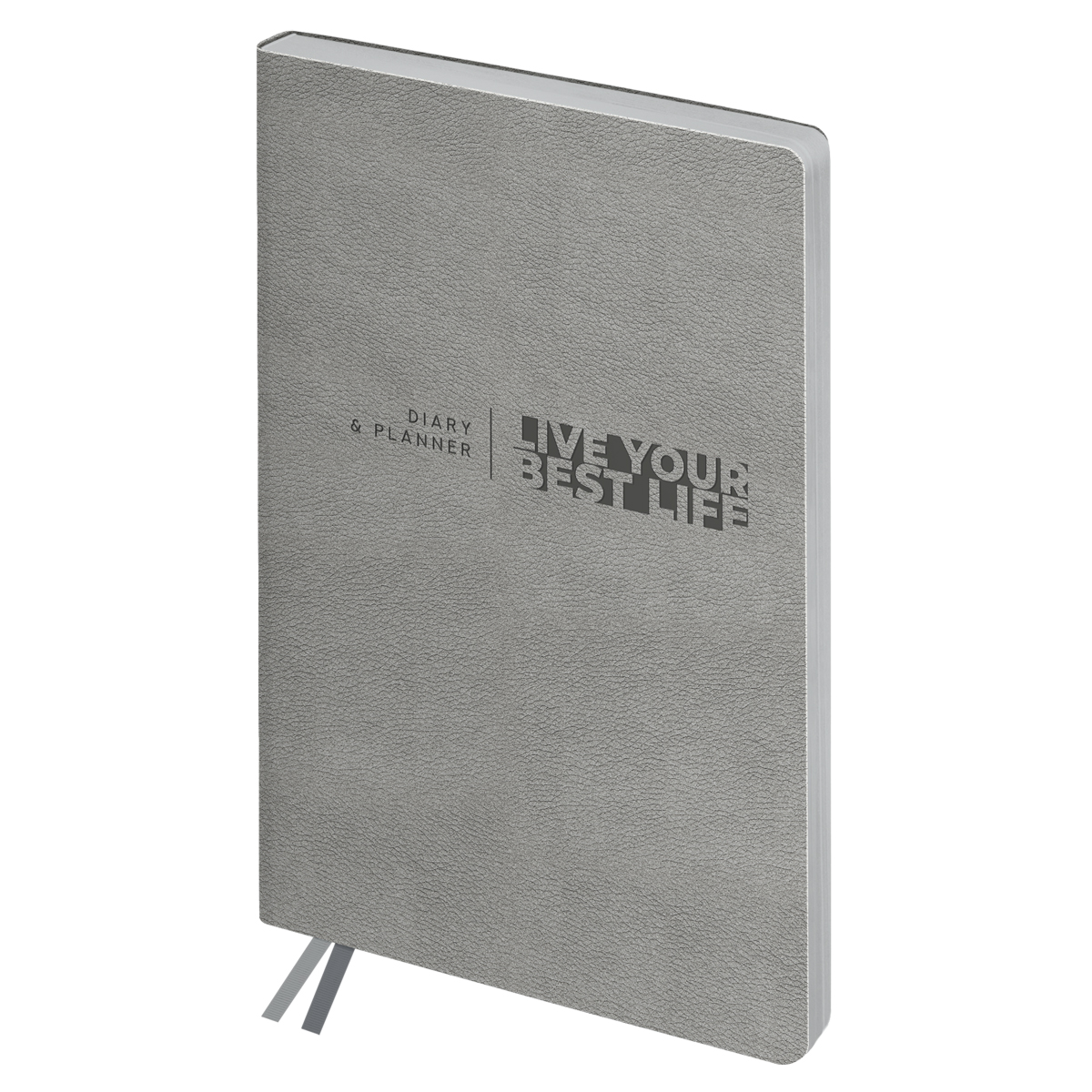 Ежедневник недатированный, А5, 136л., твердый переплет, кожзам, BG "Winner. Gray", серый5 690Купить!тг.Marwin.kzДоставка: из АлматыПожаловатьсяЭлегантный недатированный ежедневник BG формата А5 серии «Winner» в твёрдой обложке выполненной из высококачественной экокожи с гладкой матовой поверхностью и поролоновой прослойкой. Внутренний блок еще→состоит из 136 листов офсетной бумаги плотностью 70 г/м² с печатью в 2 краски. Недатированный ежедневник представлен в размере 145 × 205 мм. Перфорированные уголки и закладка-ляссе обеспечат комфорт и удобство при использовании ежедневника. В ежедневнике предусмотрена справочная информация, таблицы, календарь на 4 года и другие полезные сведения. Недатированный ежедневник подходит под персонализацию. Индивидуальная упаковка в термоусадочную пленку. Вид: Ежедневник Тип: Недатированный Формат листов:…