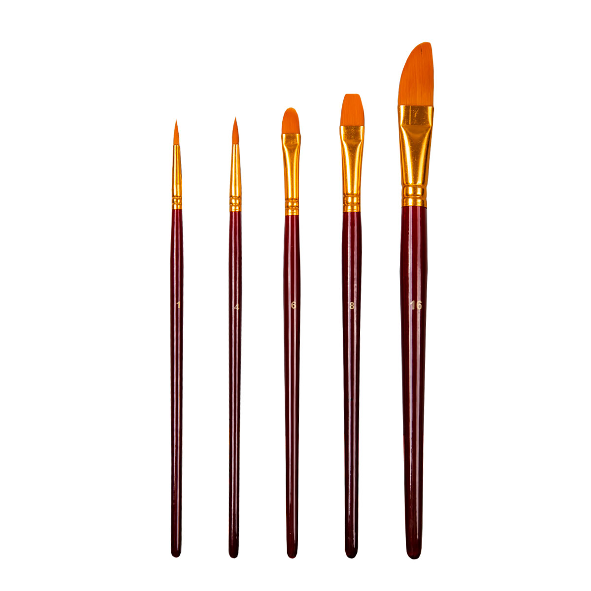 Кисти из набора идеально подойдут для художественных и декоративно-оформительских работ. Кисти предназначены для работы с акрилом, маслом, гуашью, темперой и лаком. Наконечники разной формы из синте еще→тики, обеспечивает плавность и равномерность нанесения. Ручки кистей деревянные, втулки металлические с двойной обжимкой. Набор подходит детей и взрослых, начинающих и любителей. Кисти сохраняет свою упругость при намокании.