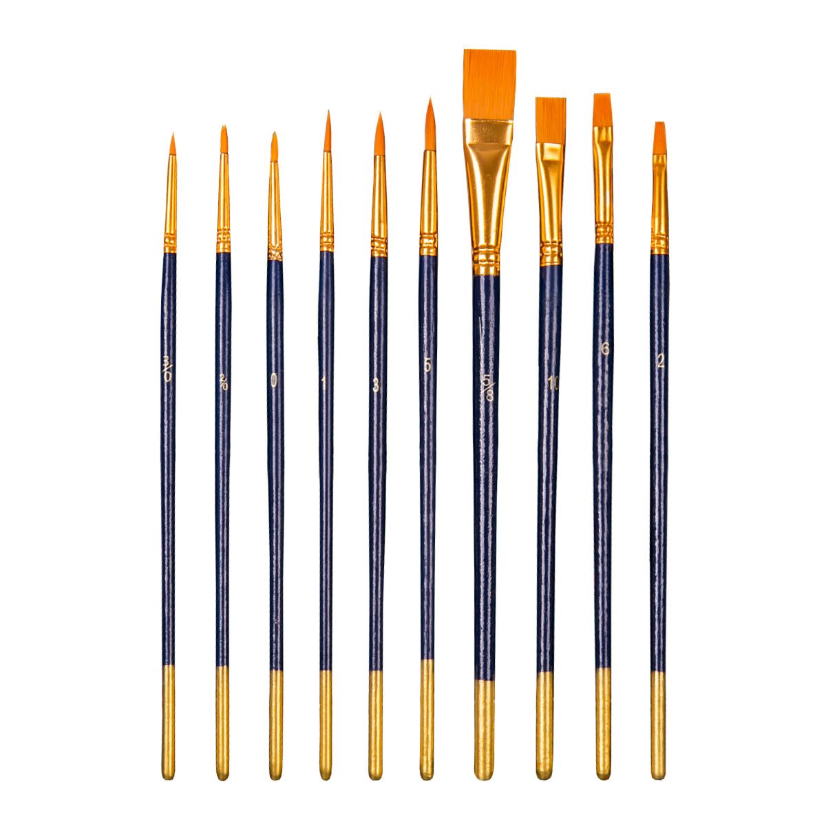 В комплекте: кисточки – 10 шт. (№ 0, 1, 2, 2/0, 3, 3/0, 5, 5/8, 6, 10)