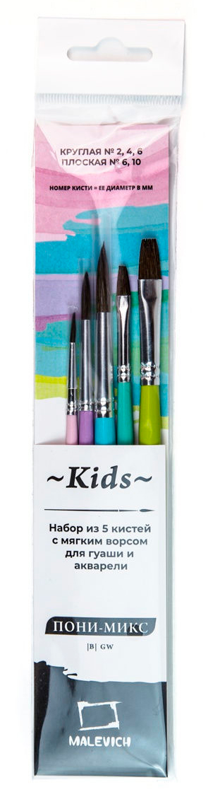 Набор кистей Малевичъ KIDS, пони микс, 5 штук (круглые №2, 4, 6, плоские №6, 10)4 790Купить!тг.Marwin.kzДоставка: из АлматыПожаловатьсяНабор кистей "Kids" от Малевичъ из смеси синтетики и волоса пони. Сочетание отличных по характеристикам волокон делает кисти в меру мягкими, послушными и долговечными. Яркие разноцветные ручки делаю еще→т эти кисти уникальными и любимыми юными художниками. Кисти отлично подойдут для акварели и гуаши. В набор входят 5 кистей: круглые кисти №2, №4, №6 и плоские №6, №10. История компании "Малевичъ" началась в 2013 году с небольшого розничного магазина для художников. В 2015 году уже была создана торговая марка "Малевичъ", быстро завоевавшая популярность благодаря жесткому контролю качества продукции на производстве и тщательному подбору материалов, что особенно важно для профессионалов. Компания разрабатывае…