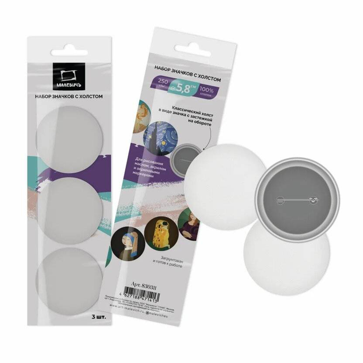 Набор значков с холстом Малевичъ, круглые 5,8 см, 3 шт3 150Купить!тг.Marwin.kzДоставка: из АлматыПожаловатьсяЗначок с холстом от бренда "Малевичъ" — это оригинальная основа для творчества и уникальный подарок, который вы можете сделать своими руками. Лицевая часть значка выполнена из 100% хлопка, плотность еще→холста 250 гр/м2. Холсты покрыты грунтом и полностью готовы к работе акриловыми или масляными красками, акриловыми маркерами и сухими графическими материалами. После высыхания краски для максимальной сохранности работы рекомендуется покрыть бесцветным лаком. Обратная сторона значка оснащена классической застежкой в виде булавки. В наборе 3 значка диаметром 5,8 см. Характеристики - Штука/набор: набор - Кол-во штук в наборе: 3 - Форма выпуска: круглые