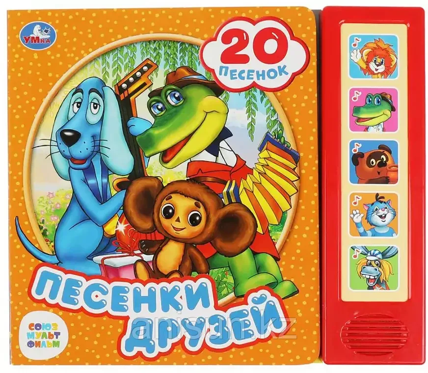 Книга Говорящая Песенки друзей 5 кнопок 10 стр 9785506070894 Умка6 820Купить!тг. Маркетплейс: Satu.kz Ani-Sun Trade Доставка: по Казахстану ПожаловатьсяМузыкальная книга «Союзмультфильм. Песенки друзей» ТМ «УМка» станет отличным подарком для ребёнка: 5 звуковых кнопок, 20 песен (фрагменты): «Антошка», «Рыжий», «Песенка Львёнка и Черепахи», «Песенка Л еще→ьвёнка и Черепахи», «Песенка крокодила Гены», «Песня Шапокляк», «Голубой вагон», «Песенка Чебурашки», «Песенка Винни-Пуха», «Чунга-Чанга», «Песенка-загадка» (Винни-Пух), «День