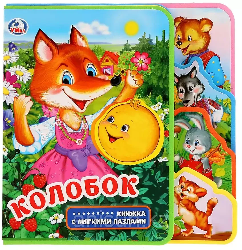 Книга Колобок EVA с закладками и 5 пазлами 10 стр 9785506025658 Умка4 669Купить!тг. Маркетплейс: Satu.kz Ani-Sun Trade Доставка: по Казахстану ПожаловатьсяКнига EVA с закладками и пазлами «Колобок» ТМ «УМка» непременно понравится малышу: - 5 мягких пазлов-вставок - закладки с изображением сказочных персонажей - известная сказка - мягкие страницы - красо еще→чные иллюстрации Оригинально оформленная книжка с фигурной вырубкой, яркими страницами и мягким обрамлением обязательно заинтересует маленького любознайку. Ребёнок с удовольствием будет листать книгу с помощью специальных закладок и играть с 5 пазлами-вставками, извлекая их из страниц и помещая обратно. Благодаря компактному формату книжку удобно брать с собой в дорогу. Чтение книги с закладками и пазлами ТМ «УМка» и игра с ней развивают: - мелкую моторику рук - внимание - логику - фантазию
