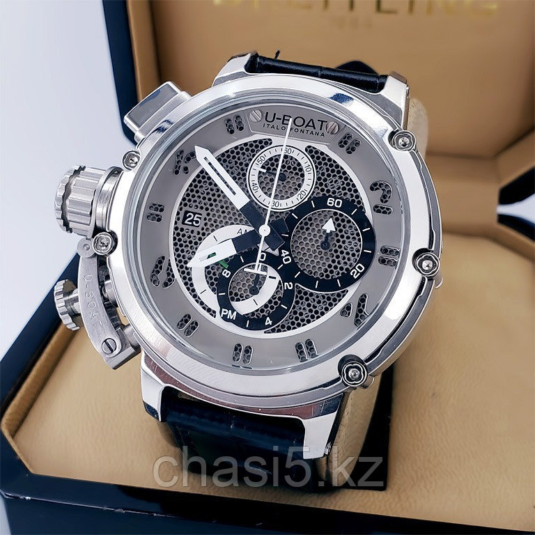 Мужские наручные часы U-Boat Chimera (15794) Серебристый104 300Купить!тг. Маркетплейс: Satu.kz Часы 5 KZ Доставка: по Казахстану ПожаловатьсяМужские наручные часы U-Boat Chimera (15794) (У-Бот), серебристый стальной корпус, черный кожаный ремешок. Застежка пряжка. Форма корпуса круглая. Брутальные часы, кварцевые с хронографом - Бесплатная еще→доставка при 100% предоплате заказа. - Доставка до пункта выдачи заказов или курьером до двери. Транспортная компания СДЭК - Гарантия 1 год. Курьерская доставка по Казахстану от 4000 тенге, срок 5-10
