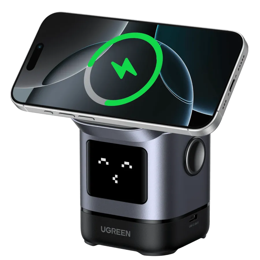 Зарядное устройство Ugreen X688 UNO RG, 100W, Black 45515B28 990Купить!тг.Shop.kzДоставка: из АстаныПожаловатьсяЗарядное устройство UGREEN X688 UNO RG мощностью 100 Вт сочетает в себе функциональность и игривость. Светодиодный дисплей Лицо робота представляет собой светодиодный дисплей, показывающий разл еще→ичные выражения в зависимости от состояния зарядки. Универсальность Благодаря 3 портам USB C и 1 порту USB A зарядное устройство совместимо с различными устройствами.