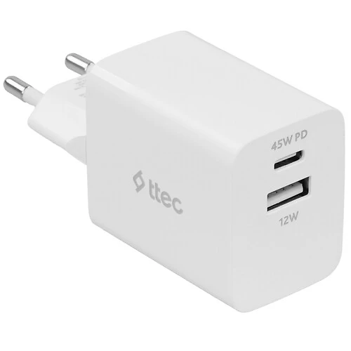 Сетевое зарядное устройство ttec SmartCharger 45W PD Duo Travel Charger (2SCP02S) черный 2SCP02S20 129Купить!тг.Greenprice.kzДоставка: из АлматыПожаловатьсяПортативное зарядное устройство 45 Вт USB-C и USB-A Выходы: USB-C (PD 45 Вт выходная мощность при использовании пората) USB-A (12 Вт) Возможность одновременной зарядки двух различных устройства: ра еще→бота в режиме быстрой зарядки при подключении не более одного устройства Поддержка технологий быстрой зарядки PD/QC/PPS Умный чипсет, совместимый со всеми мобильными устройствами Защита от перегрузок и короткого замыкания для безопасной зарядки Удобная транспортировка благодаря эргономичному дизайну