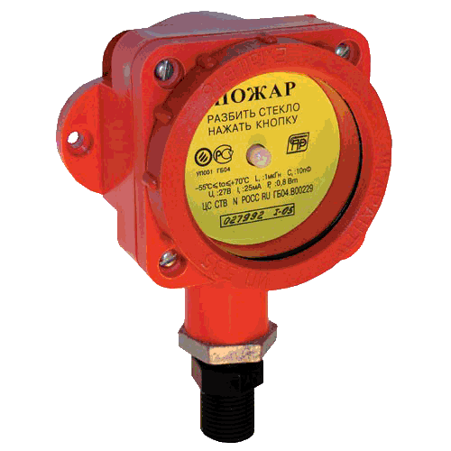 | Оптовые поставки! Минимальная сумма заказа — 500 000 T Извещатель пожарный ручной взрывозащищенный, взрывобезопасный уровень защиты 0ExiaIIBT6, потребление в дежурном режиме 0,01 мА, в режиме пожара 20,5..21,2 мА, питание 6-28 В, IP67, рабочие температуры -55°С +70°C, может применяться как внутри помещения, так и снаружи. ИПР для наруж.установ., 0ExiaIIBT6, агресс. стойкий, штуцер в компл., I-деж.10мкА, t-раб.-55...+70°С, IP67, 160х110х70мм. | |