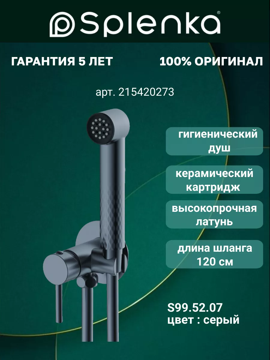 Смеситель с гигиеническим душем встраиваемый Splenka S99.52.07 графит27 789Купить!тг.Greenprice.kzДоставка: из АлматыПожаловатьсяВстраиваемый смеситель Splenka S99.52.07 с гигиеническим душем — компактное решение для санузла. Цвет — графит. Корпус из латуни, скрытый монтаж, антикоррозийное покрытие. В комплекте: монтажный бло еще→к, гигиеническая лейка, держатель, шланг. Стильный дизайн, удобное управление, надёжная фиксация.