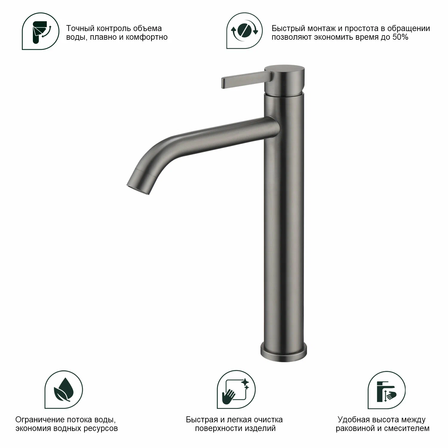 Смеситель для раковины высокий Splenka S221.15.09 графит106 462Купить!тг.Greenprice.kzДоставка: из АлматыПожаловатьсяSplenka S221.15.09 — это высокий однорычажный смеситель для раковины, выполненный в отделке «графит». Идеален для интерьеров в стиле лофт, техно и минимализм. Сочетает строгую эстетику с надёжной ко еще→нструкцией и устойчивостью к повреждениям.
