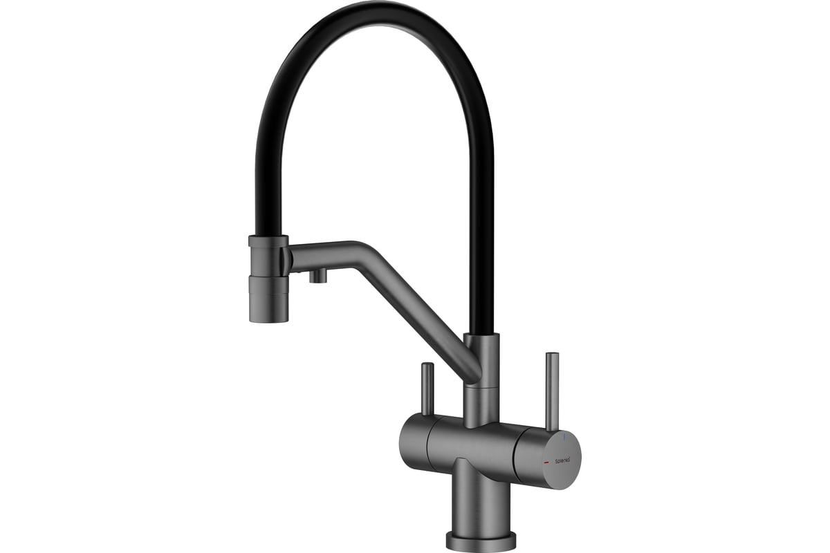 Смеситель для кухни со съемным изливом на магните и подключением фильтра питьевой воды Splenka графит S70.62.0953 102Купить!тг.Greenprice.kzДоставка: из АлматыПожаловатьсяСмеситель Splenka S70.62.09 в графитовом цвете объединяет современный дизайн и максимальное удобство для кухни. Корпус выполнен из высококачественной латуни с антикоррозийным матовым покрытием, что еще→обеспечивает долговечность и надежность. Съемный на магните излив облегчает наполнение емкостей и мытье посуды, а подключение к фильтру питьевой воды обеспечивает чистую воду прямо из крана. Эргономичный рычажный механизм управления позволяет точно регулировать напор и температуру воды. Компактная установка на раковину делает смеситель удобным в использовании и стильным элементом кухни.