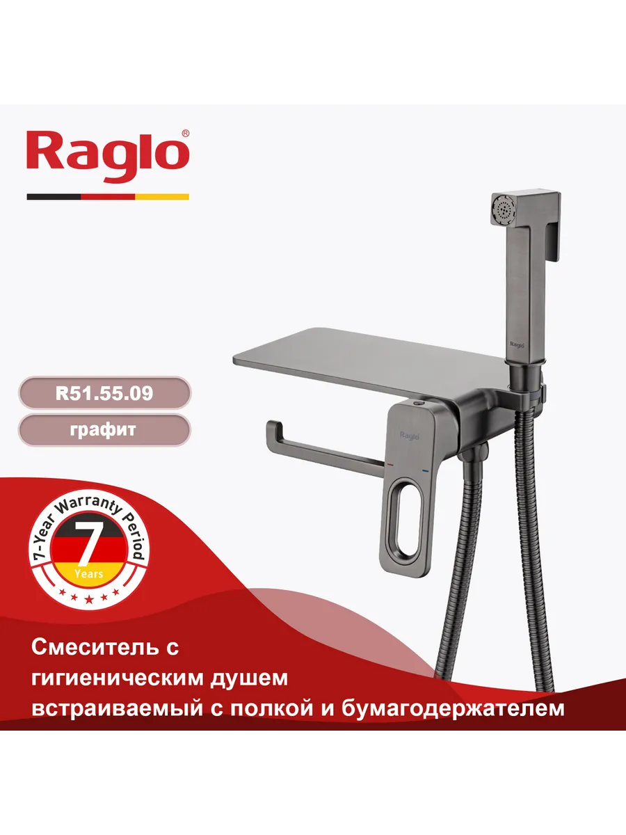 Смеситель с гигиеническим душем с бумагодержателем и полочкой Raglo R51.55.09 оружейная сталь92 729Купить!тг.Greenprice.kzДоставка: из АлматыПожаловатьсяМногофункциональный смеситель Raglo R51.55.09 — это гигиенический душ, бумагодержатель и полочка в одном корпусе. Цвет — оружейная сталь. Матовая поверхность устойчива к царапинам и отпечаткам. В ко еще→мплекте: монтажный блок, гигиеническая лейка, шланг, держатель, полочка с держателем для бумаги. Идеален для компактных санузлов.