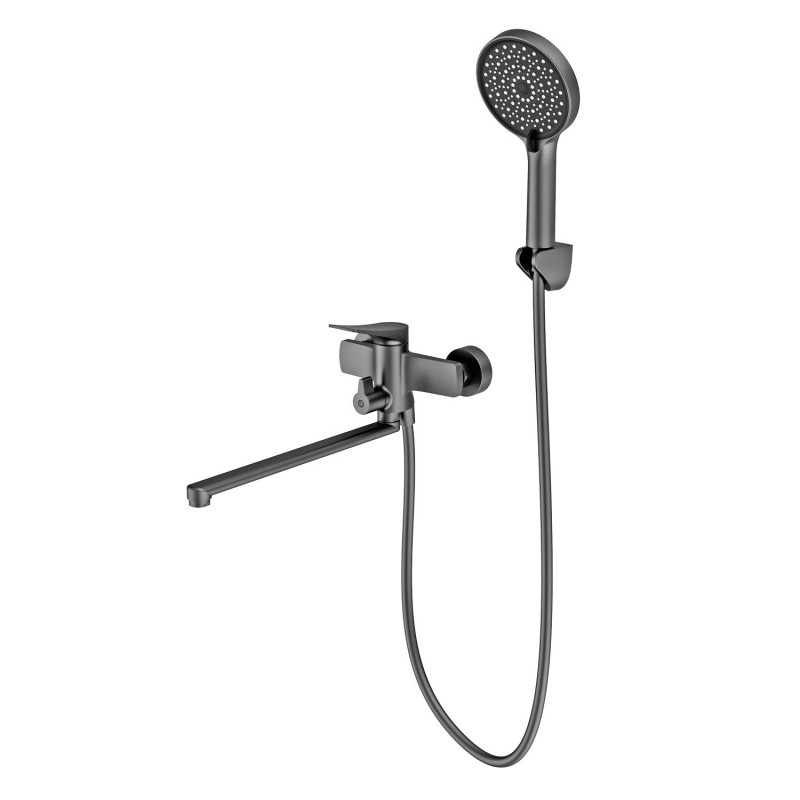 Смеситель для ванны Splenka S54.22.09 оружейная сталь51 014Купить!тг.Greenprice.kzДоставка: из АлматыПожаловатьсяСмеситель для ванны Splenka S54.22.09 в цвете оружейная сталь (графит) — это современный однорычажный смеситель, предназначенный для настенного монтажа в ванной комнате и совмещения подачи воды в ва еще→нну и на душ. Он изготовлен из прочной латуни с декоративным графитовым покрытием, которое устойчиво к износу и легко очищается от загрязнений. Управление осуществляется одной ручкой,