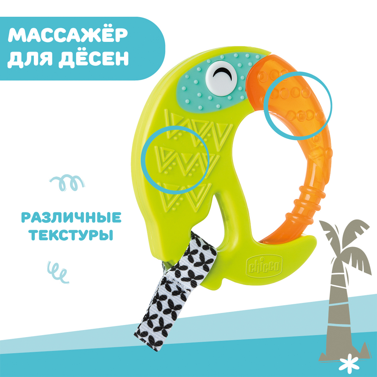 Chicco: Погремушка-прорезыватель Слоник 3м+5 490Купить!тг.Marwin.kzДоставка: из АлматыПожаловаться Погремушка, которую легко хватать, идеальна при прорезывании зубов. Три маленьких вращающихся шарика из различного материала помогают в развитии осязания и координации.