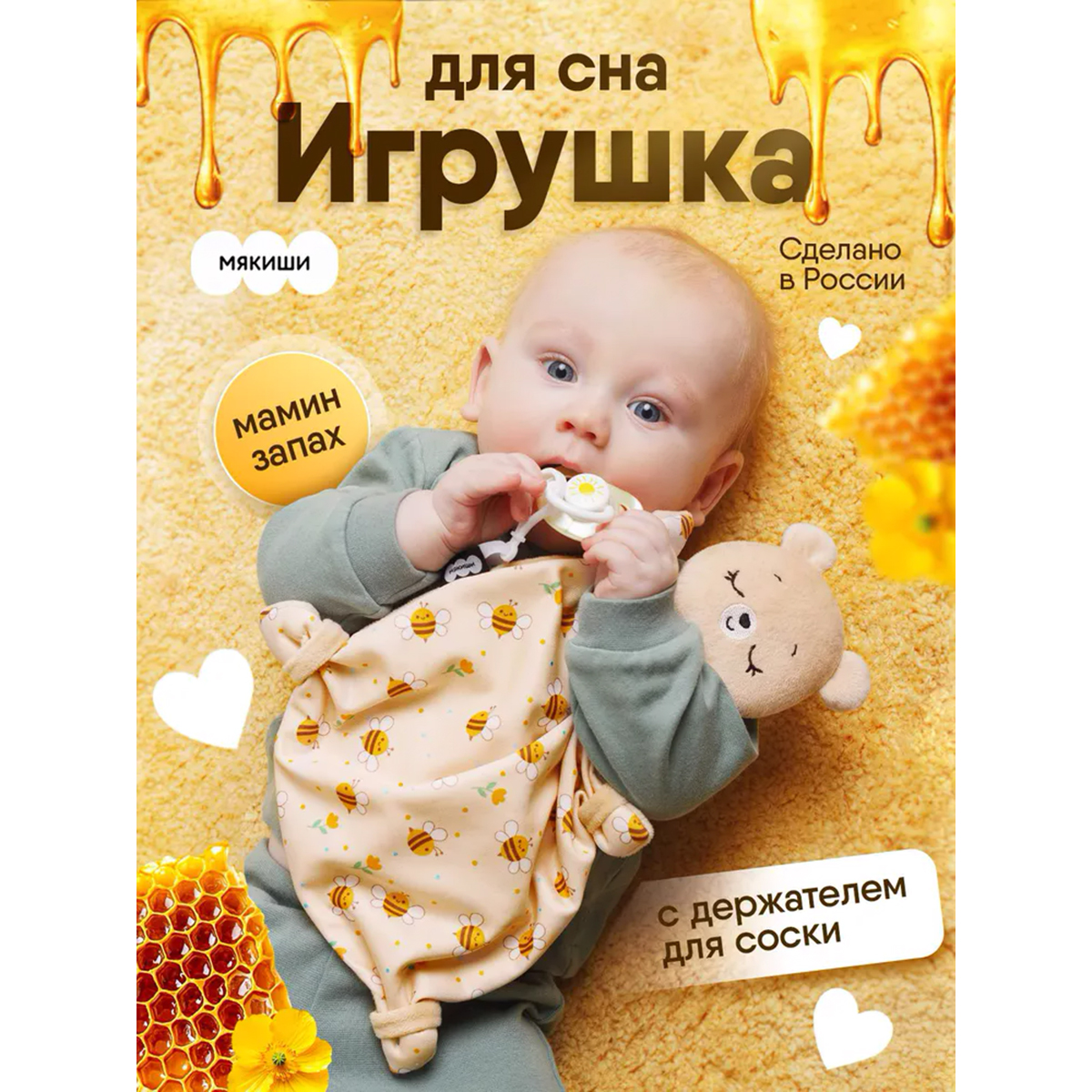 Мякиши: Игрушка комфортер "Мишка Барни с держателем для соски"6 360Купить!тг.Marwin.kzДоставка: из АлматыПожаловатьсяИгрушка для новорожденных мишка Барни с держателем для соски — это первая и самая важная игрушка для малыша. Созданная для самых сладких и крепких снов младенца, мишка "Барни" выполнен из премиальны еще→х материалов. Мягчайшие материалы не раздражают кожу новорожденного. Прочная, качественная и безопасная фурнитура поможет закреплять соску и не терять ее, что облегчит жизнь ребеночка и родителей. Взаимодействуя с мягким комфортером, ребенок осваивает важнейшие навыки самоуспокоения и учится засыпать самостоятельно. А во время бодрствования комфортер отлично подойдет для активных игр – его приятная фактура ткани и вышивки поможет в развитии тактильного интеллекта и мелкой моторики. Разные ткани разви…