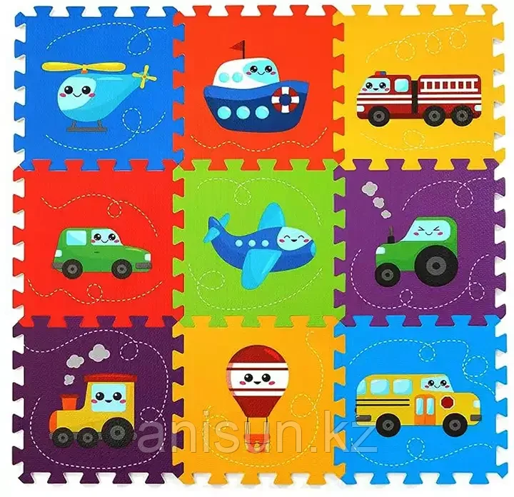 Коврик-пазл Средства передвижения HK0127 094Купить!тг. Маркетплейс: Satu.kz Ani-Sun Trade Доставка: по Казахстану ПожаловатьсяОсобенности коврика: -Водостойкий, моющийся. -Нетоксичен, гепоаллерген. -Не скользит. Размер одного пазла: 30*30*1 см Размер коврика: 90*90*1см Площадь коврика в собранном виде 0,81кв.м.