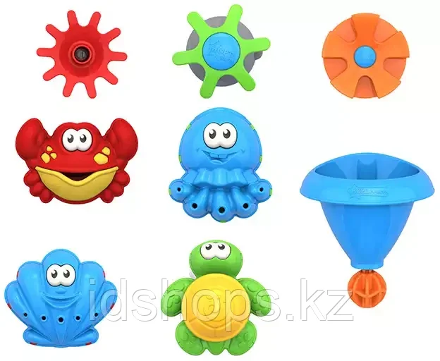 Игрушка для ванны Водная серия 741 Нордпласт5 331Купить!тг. Маркетплейс: Satu.kz Ani-Sun Trade Доставка: по Казахстану ПожаловатьсяНабор игрушек для ванной «Водная серия» обязательно понравится малышу и превратит обычные водные процедуры в увлекательное приключение. Стоит налить в обитателей водного мира воды и благодаря отверсти еще→ям в игрушках, из них польются струйки воды, а если на панцирь черепашки направить напор воды, панцирь начнет крутиться, так же в набор входят шестеренки и умывальник, соединив шестеренки друг с другом и направив на одну из них напор воды, все шестеренки закрутятся. Благодаря присоске на задней части игрушек, их можно закрепить на любой гладкой поверхности. Прочный безопасный пластик, яркие цвета, которые не тускнеют со временем, четкая деталировка.