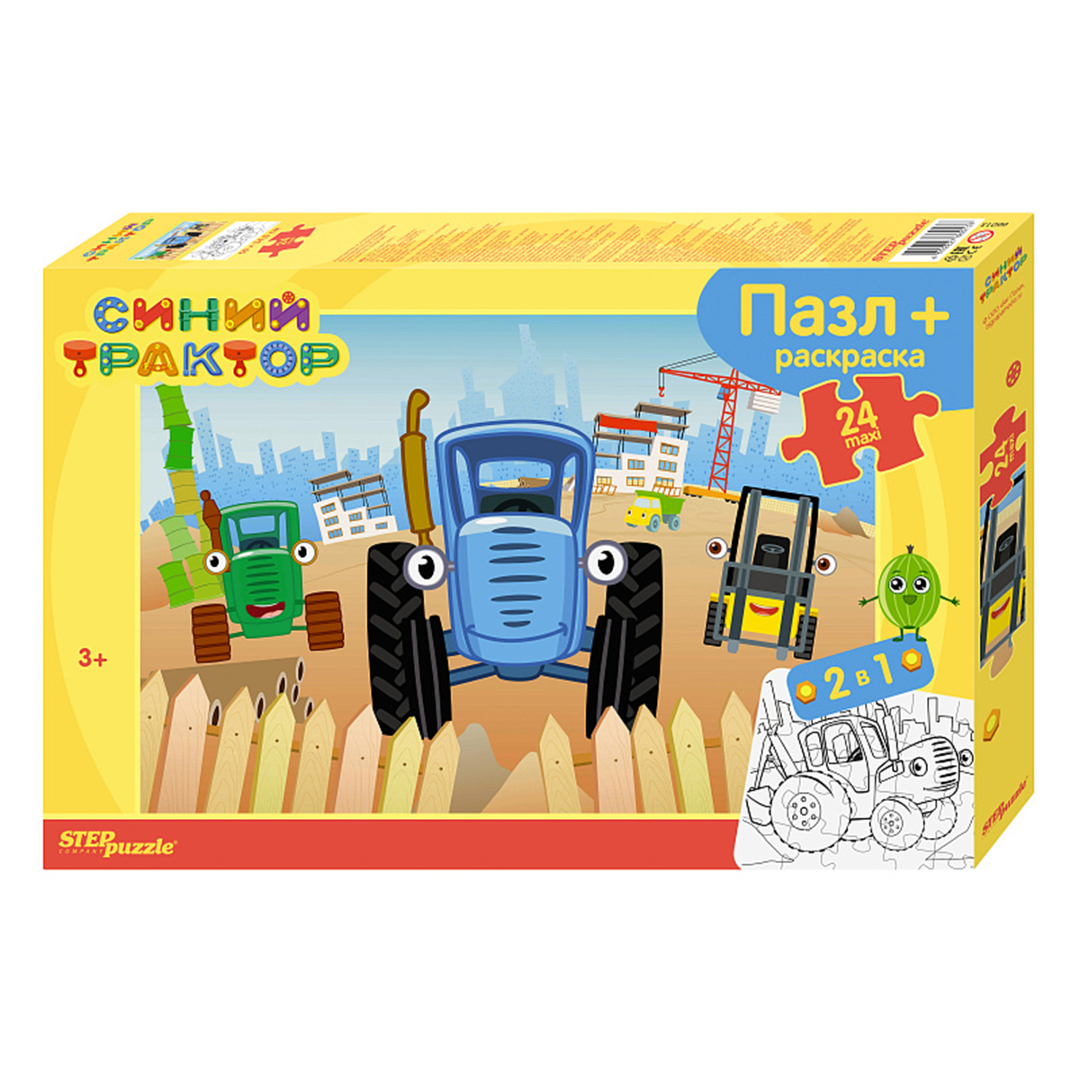 Step Puzzle: Пазлы maxi + раскраска "Синий трактор" (Биг Папа), 24 эл.2 990Купить!тг.Marwin.kzДоставка: из АлматыПожаловатьсяМаленьким любителям сборных картинок понравится этот красочный пазл. Особенности: - детали крупные — удобны в манипулировании и эргономичны для детской руки; - красочная коробка с картинкой-обра еще→зцом на крышке; - легкая сборка без клея; - яркая печать; - прочный пазловый замок; - каждая деталь имеет индивидуальную форму и легко соединяется с другой; - можно оформить рамкой и повесить на стену; - экологичные, нетоксичные материалы; - многократность сборки. Сборка пазла развивает: - образное и логическое мышление; - мелкую моторику; - умение видеть часть и целое и сопоставлять их; - усидчивость; - концентрацию внимания; - память. Материал: картон Комплектация: детали пазла - 24 …