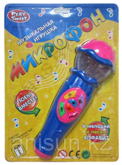 Детский музыкальный микрофон Play Smart4 206Купить!тг. Маркетплейс: Satu.kz Ani-Sun Trade Доставка: по Казахстану ПожаловатьсяДетский музыкальный микрофон Play Smart Всем известно, что в каждом ребенке живет творческая личность. Кто-то любит рисовать, кто-то танцевать, а кто-то петь! И именно для детей, которые любят петь на еще→сайте landuken.kz можно приобрести ! Эта игрушка способствует развитию мелкой моторики, речи, визуального и слухового восприятия. Нажмите на зеленую кнопку - включится микрофон. Говорите и пойте! Нажмите на синюю кнопку - выбирайте музыку и пойте! Нажмите на красную кнопку - слушайте и пойте песенку Алфавит! С такой развивающей игрушкой, вашему ребенку никогда не станет грустно!