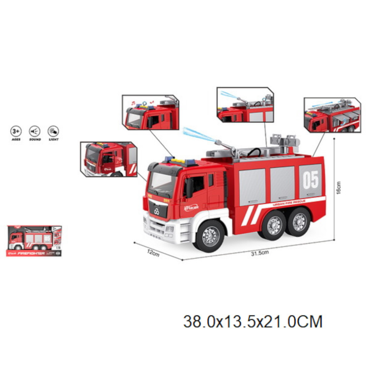 Wenyi: Firefighter. 1:10 Инерционная машина Пожарная, с лестницей9 990Купить!тг.Marwin.kzДоставка: из АлматыПожаловатьсяДетская пожарная машина – это не просто игрушка, а настоящий пожарный автомобиль в миниатюре! Ребенок сможет почувствовать себя отважным спасателем, спешащим на помощь. Машина оснащена множеством еще→реалистичных функций, которые сделают игру еще более интересной. Инерционный механизм позволит быстро перемещать машину по любой поверхности. Рабочая платформа и выдвижная лестница добавят реалистичности игровому процессу. Три кнопки на крыше кабины активируют звуковые и световые эффекты: сирену, мигалки и реалистичные звуки пожарной машины. Благодаря помповому механизму, ребенок сможет наполнить емкость для воды и тушить воображаемые пожары. Машина выполнена из качественного пластика. Про…