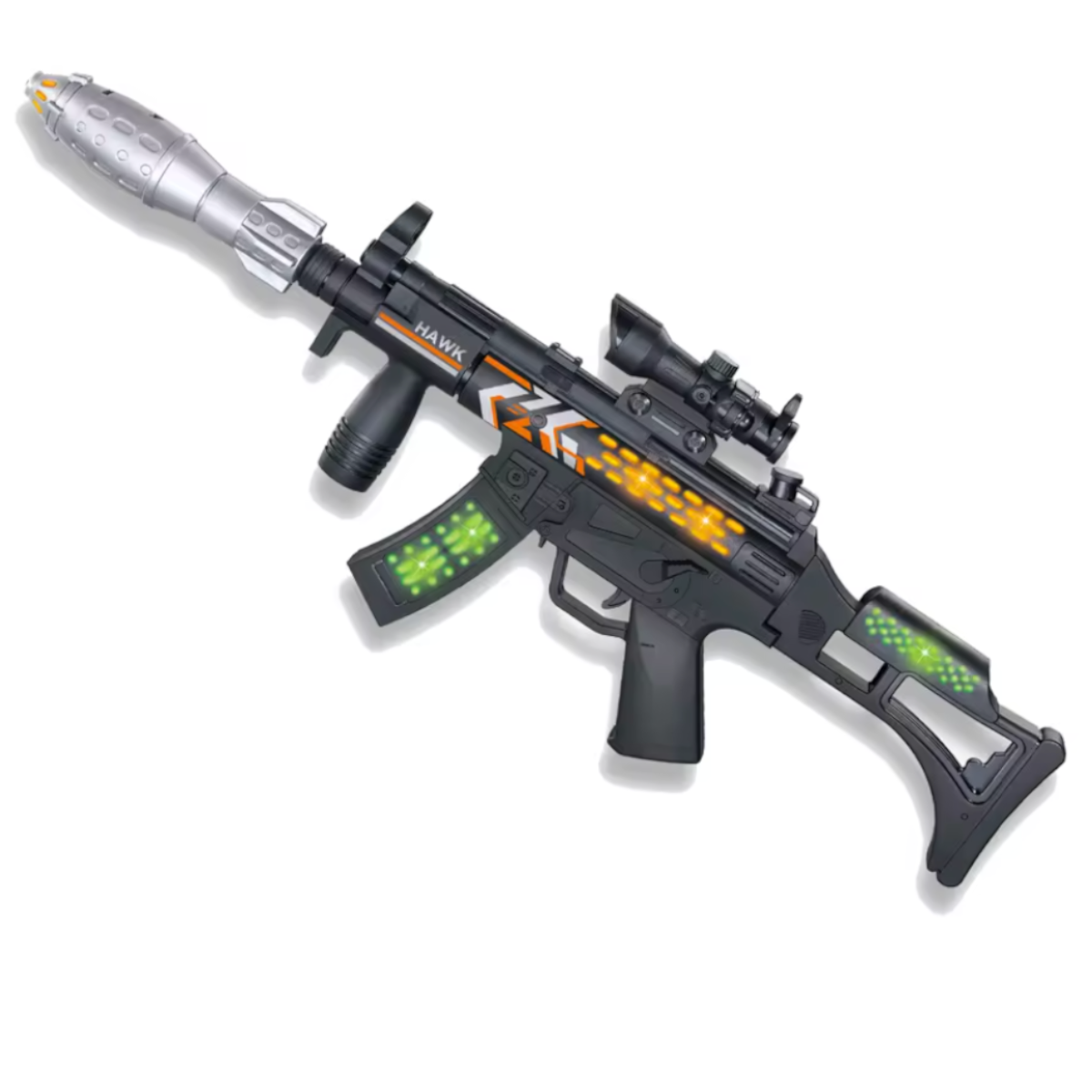 FirePower: Револьвер с прицелом2 490Купить!тг.Marwin.kzДоставка: из АлматыПожаловатьсяРевольвер – это лучший подарок, который можно преподнести маленькому любителю войнушек или перестрелок! Револьвер выполнена в реалистичном стиле. Игрушка оснащена световыми и звуковыми эффектами. Пр еще→и нажатии на курок издаётся звук выстрелов. Во время стрельбы барабан вращается, подсвечиваешь красным цветом. Дуло в темном помещении проецирует изображение корабля на любой поверхности. Револьвер развивает ловкость, внимание и сосредоточенность. Револьвер изготовлен из качественного пластика, который абсолютно безопасен для детей. Револьвер работает от 3 батареек типа АА, не входят в комплект. - Размер револьвера (г/ш/в): 23 х 5 х 16 см - Размер упаковки (г/ш/в): 5 х 23.5 х 16 см - Материал: пластик …