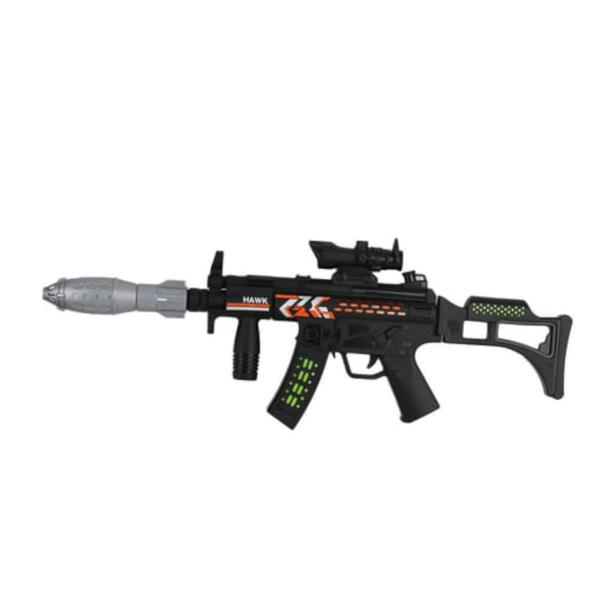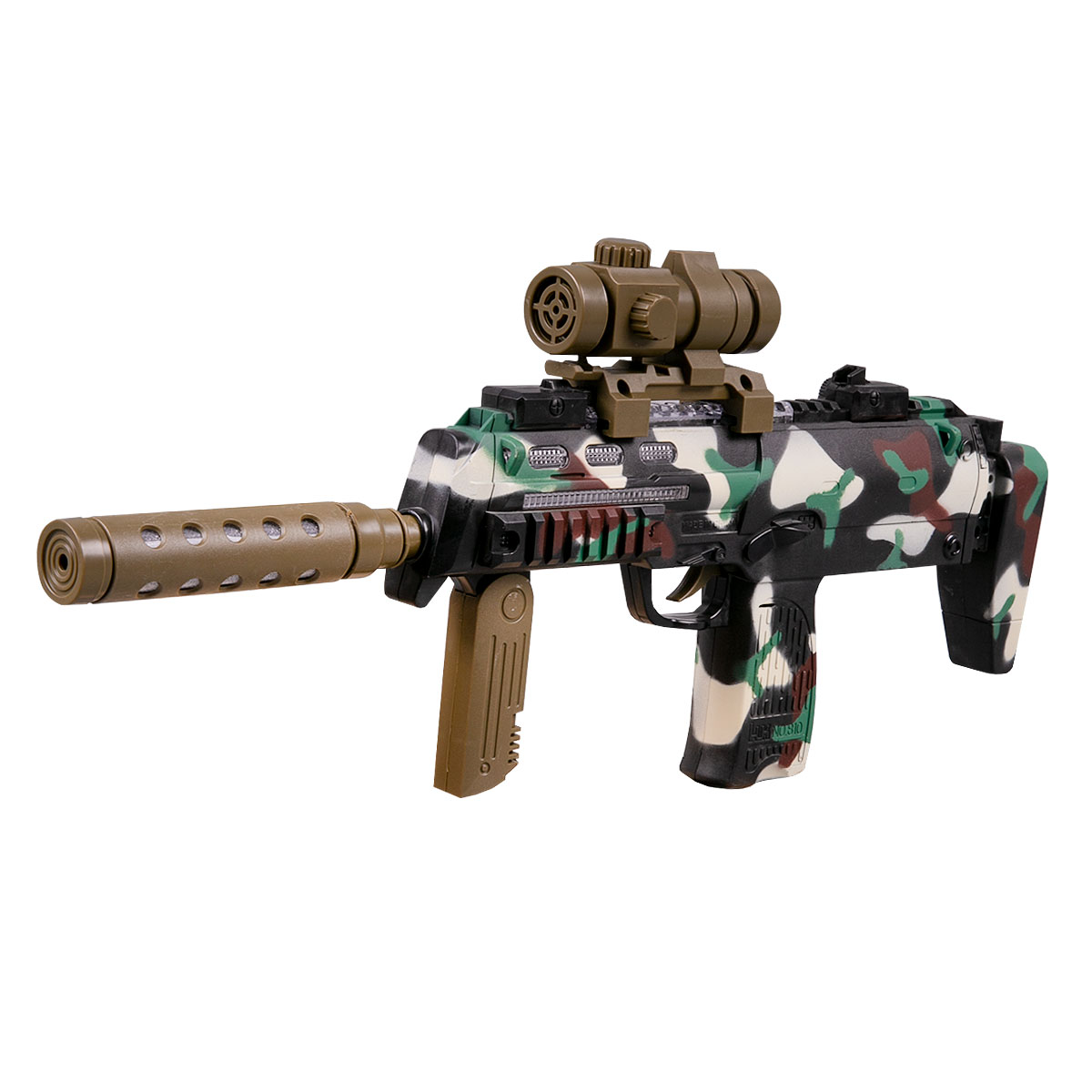 FirePower: Игровое оружие MP7A1, со светом и звуком (камуфляж)4 490Купить!тг.Marwin.kzДоставка: из АлматыПожаловатьсяИгровое оружие MP7A1 – это лучший подарок, который можно преподнести маленькому любителю войнушек или перестрелок! Оружие выполнено в реалистичном стиле и ее удобно держать в руках или носить с собо еще→й. Игрушка оснащена световыми и звуковыми эффектами. Если нажать курок, то воспроизводится звук выстрелов очередью. Во время стрельбы дуло и корпус подсвечивается синим цветом. Так же во время активации дуло винтовки двигается вперед-назад. Перед курком расположена вторая ручка для удобного держания оружия. При необходимости ручку можно сложить или разложить. Оружие развивает ловкость, внимание и сосредоточенность. Оружие изготовлена из качественного пластика, который абсолютно безопасен для дет…
