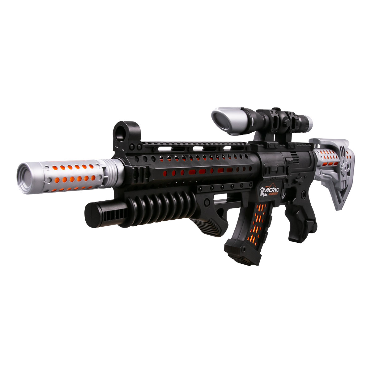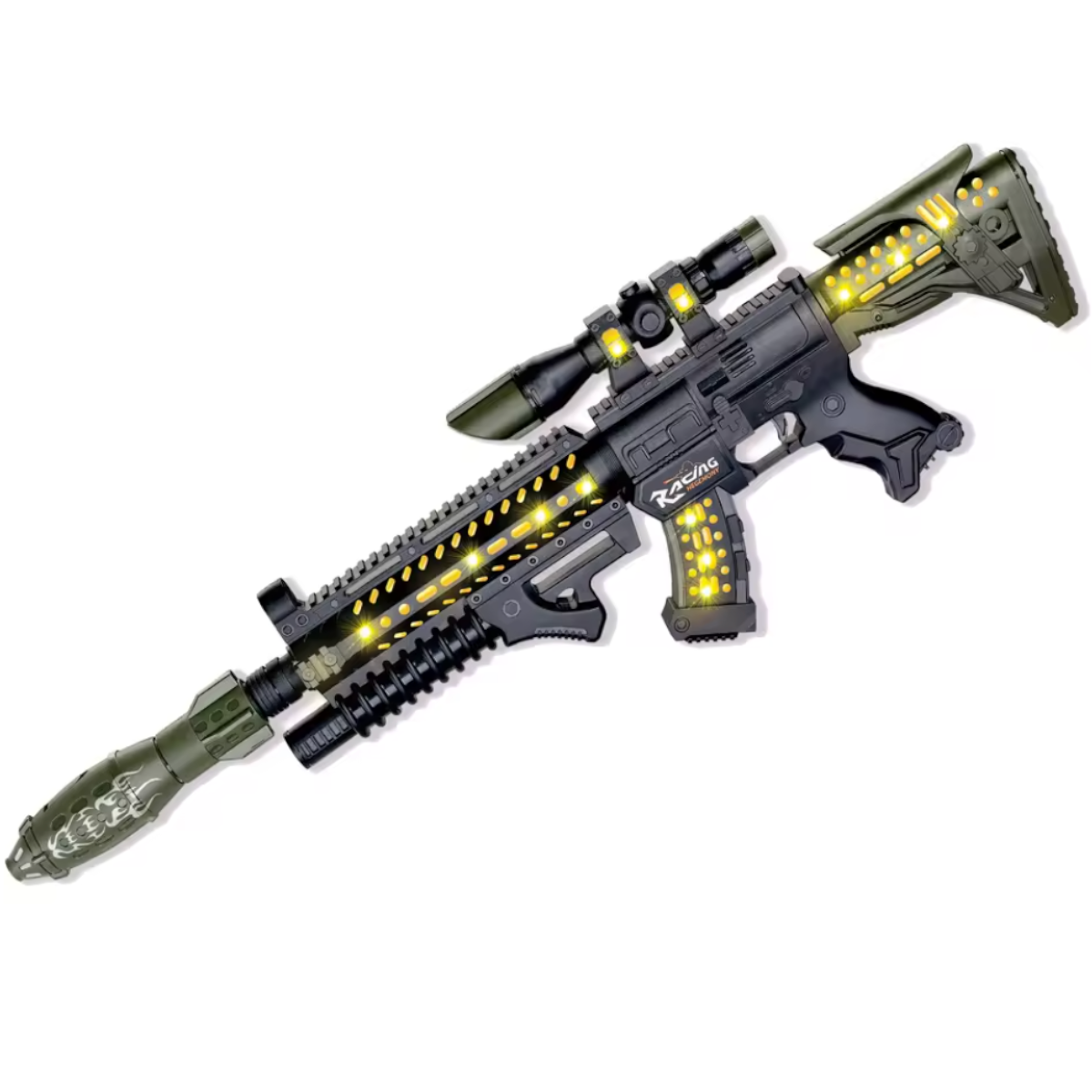 FirePower: Винтовка с прицелом (на сошке)5 490Купить!тг.Marwin.kzДоставка: из АлматыПожаловатьсяВинтовка – это лучший подарок, который можно преподнести маленькому любителю войнушек или перестрелок! Винтовка выполнена в реалистичном стиле и ее удобно держать в руках или носить с собой. Игрушка еще→оснащена световыми и звуковыми эффектами. При нажатии на курок издаётся звук одиночного выстрела. Если зажать курок, то воспроизводится звук выстрела очередью. Во время стрельбы дуло, корпус и магазин винтовки подсвечивается синим цветом. На левой боковой стороне винтовки расположена кнопка «Switch», при нажатии которой воспроизводится звук перезарядки. Потянув за затвор с правой стороны винтовки, воспроизводится звук смены патрона. Вовремя перезарядки или смены патрона винтовка подсвечивается. В ком…