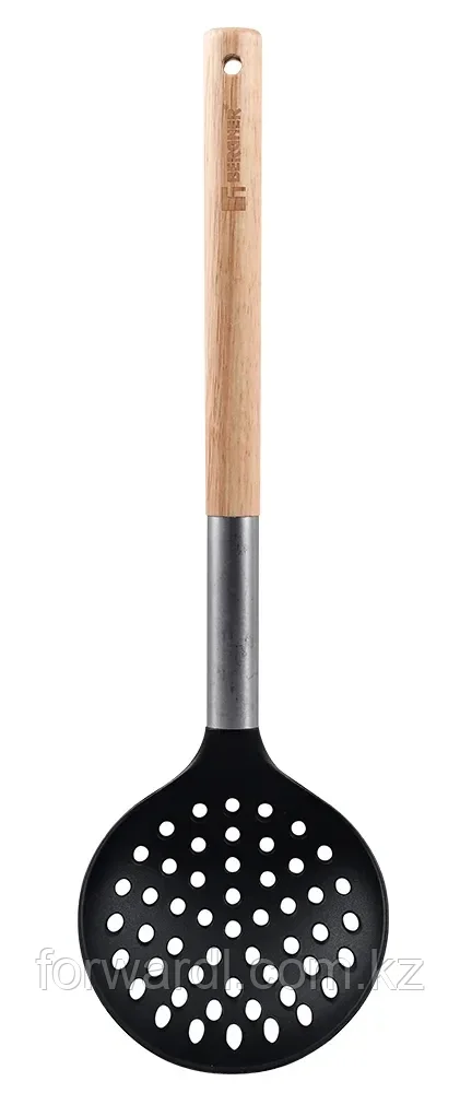 Шумовка Bergner BG-38795-BK Серый1 010Купить!тг. Маркетплейс: Satu.kz ТОО "Forward L" Доставка: по Казахстану ПожаловатьсяРазмеры 35 см Материал металл / нержавеющая сталь / нейлон Цвет черный / серый ТЕРМОСТОЙКОСТЬ ДО 210 °C. ВОЗМОЖНО ИСПОЛЬЗОВАНИЕ ПОСУДОМОЕЧНОЙ МАШИНЫ.