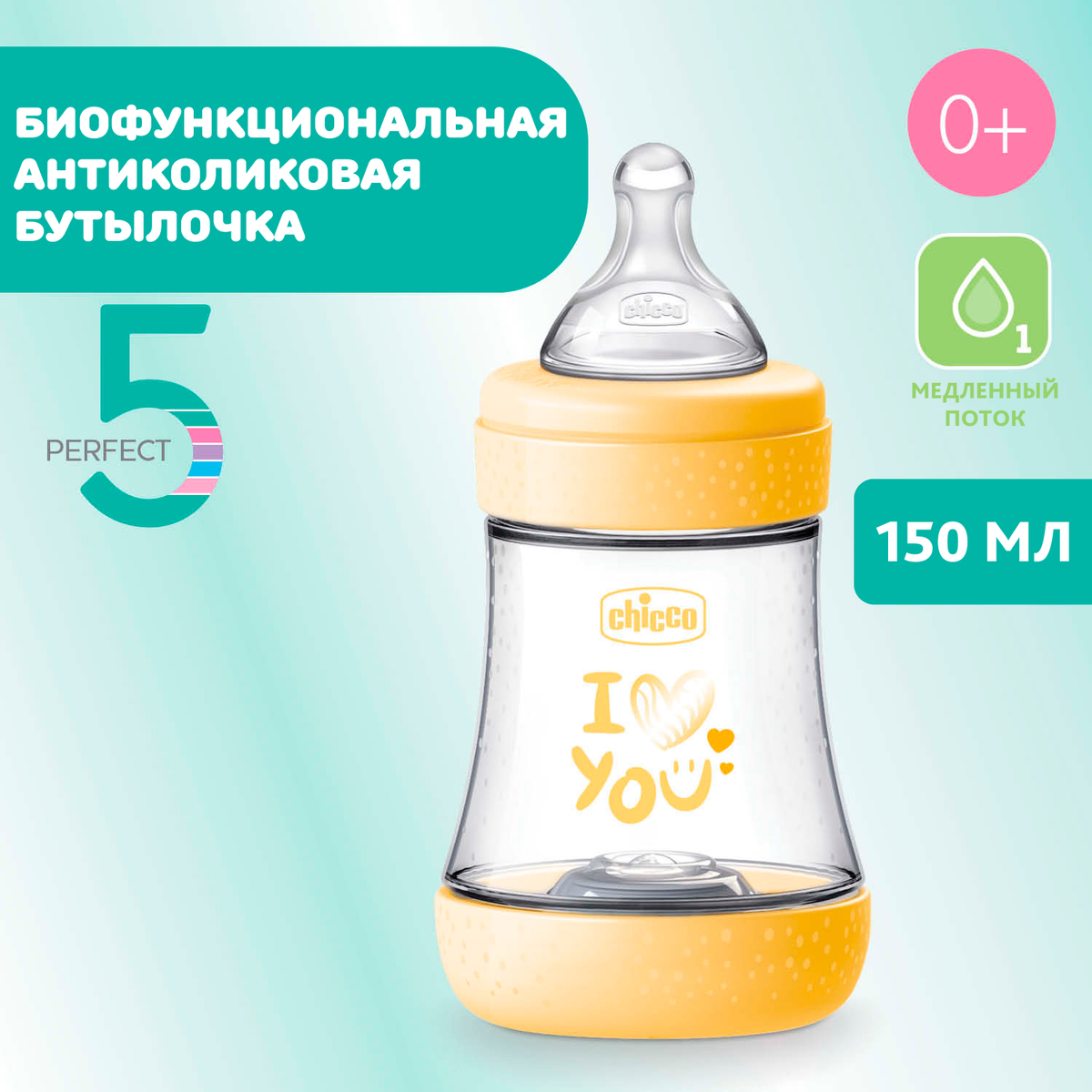 Chicco: Бутылочка для кормления Perfect5 NEW силикон 150 мл 0м+, желтый3 995Купить!тг.Marwin.kzДоставка: из АлматыПожаловатьсяPerfect5 — биофункциональная бутылочка, которая естественным образом адаптируется к ритму сосания каждого ребенка. Революционный антиколик благодаря сочетанию соски Physio с инновационной мембран еще→ой Equilibrium; они поддерживают ритм и интенсивность всасывания, помогая предотвратить попадание воздуха. Регулярное и постоянное кормление, гарантирующее ребенку естественное ощущение благодаря гибкости равновесного мембранного клапана, который адаптируется к интенсивности сосания ребенка посредством микродвижений. Мягкая физиологическая соска из гигиенического силикона с покрытием Soft Sense. Соска: медленный поток. Возраст: 0+ Размер: 150 мл.