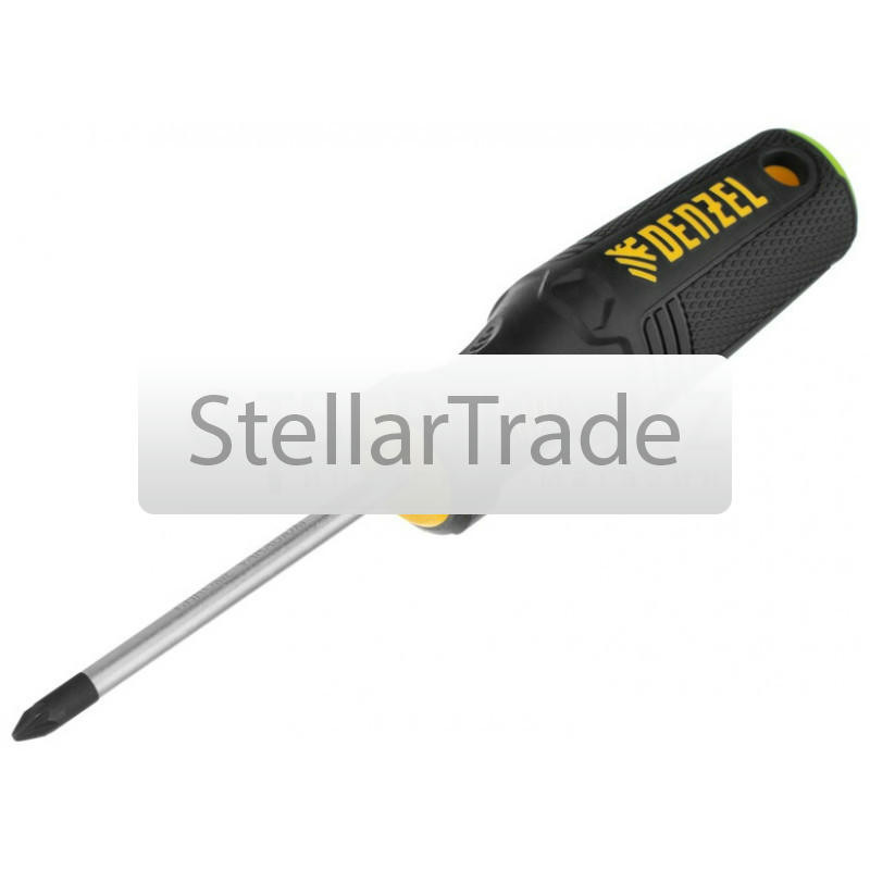 Отвертка Denzel 121727820Купить!тг.Stellartrade.kzДоставка: из АлматыПожаловатьсяОтвертка Denzel 121727 с трехкомпонентной рукояткой, со стержнем из стали S2, длиной 100 мм, предназначена для закручивания и откручивания резьбового крепежа типа PH0. Высокоточный намагниченный шлиц еще→избавляет мастера от необходимости придерживать винт или саморез рукой. Отвертка рекомендована для профессионального использования. Преимущества Denzel 121727: Прочность -