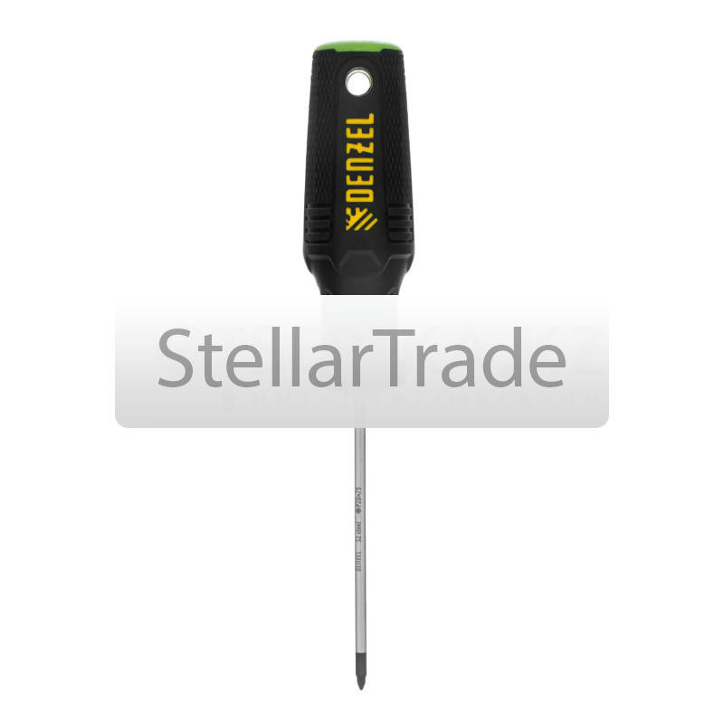 Отвертка Denzel 122037820Купить!тг.Stellartrade.kzДоставка: из АлматыПожаловатьсяОтвертка Denzel 122037 с трехкомпонентной рукояткой, со стержнем из стали S2, длиной 75 мм, имеет шлиц PZ0 и предназначена для монтажных и демонтажных работ с резьбовыми соединениями типа Pozidriv. Бл еще→агодаря намагниченному высокоточному шлицу отвертку с крепежом можно направлять одной рукой, удерживая другой закрепляемую деталь. Инструмент подходит для профессионального использования.